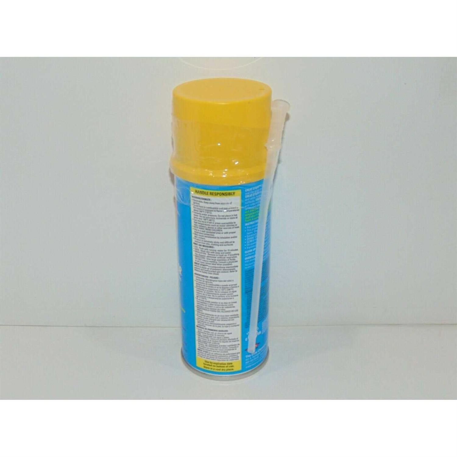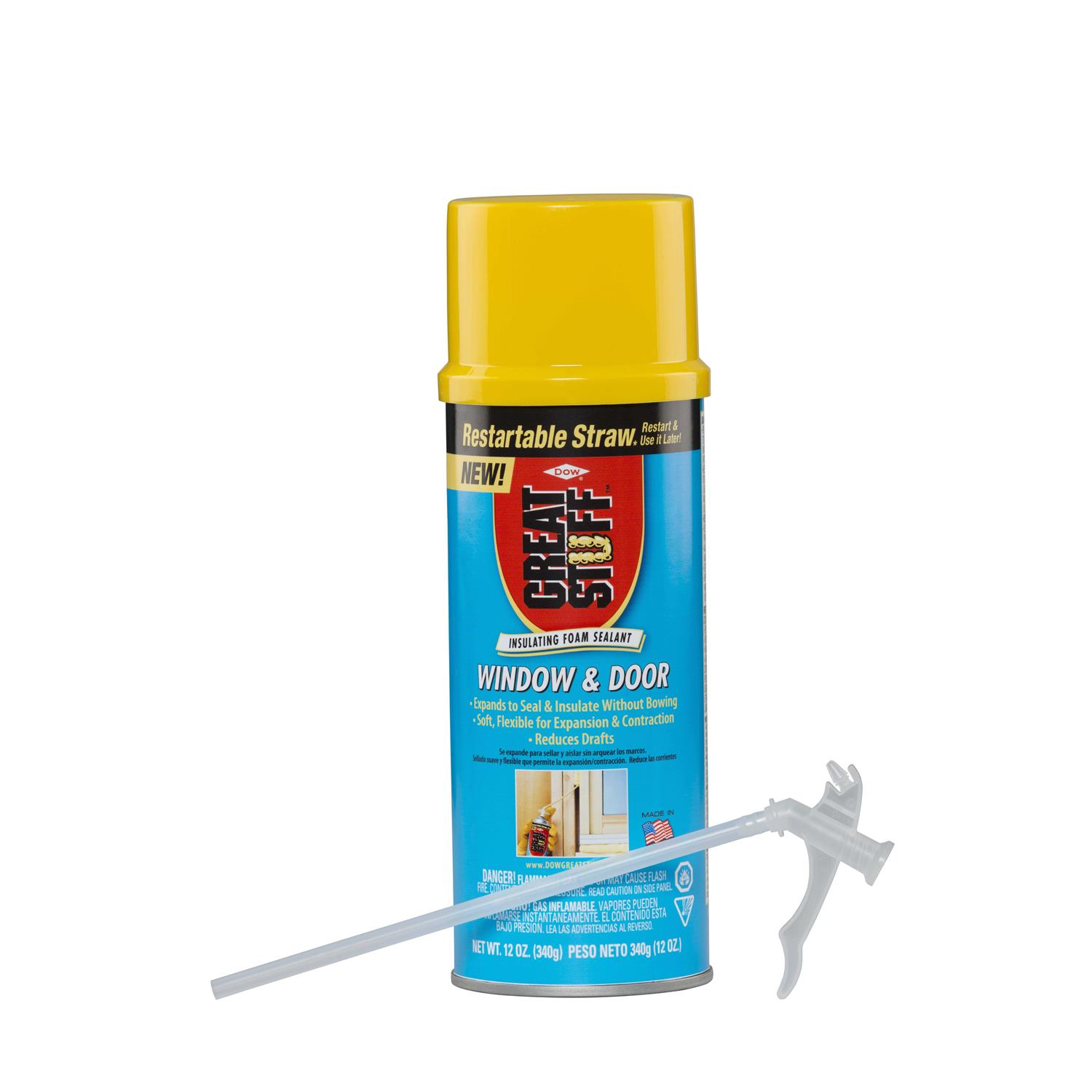 Polyurethane foam sealant exclusively formulated to air-seal the gap between the window or door, and its rough opening. Low-pressure formula sprayed into rough opening expands to fill gap, and will not buckle or bow window or door frames. Soft pliable yellow foam is easy-to-remove if gap is overfilled. Complements energy efficiency of window or door by providing a permanent weather-tight air seal, reducing heating and cooling costs. Foam repels water and prevents wood rot and other weather related problems associated with moisture. One 12 oz. can will foam up to 4 average sized residential windows (36″ x 60″, 3/8″ wide gap, 1″ deep). Conforms to ASTM standards. 12 oz. can Great Stuff window and door foam with dispensing apparatus.