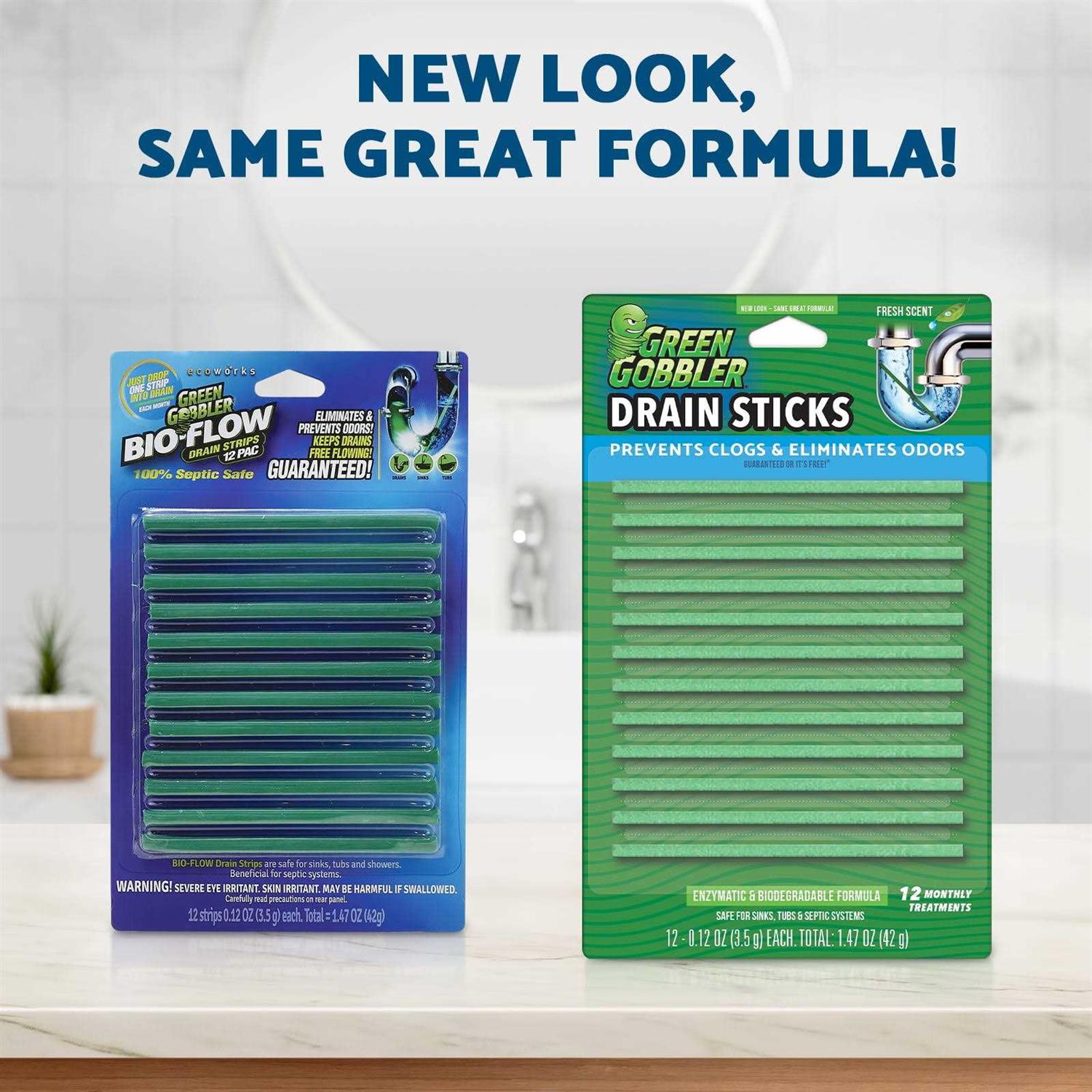 Green Gobbler Bio-Flow Drain Strips 24 | Cleaner & Deodorizer Sticks