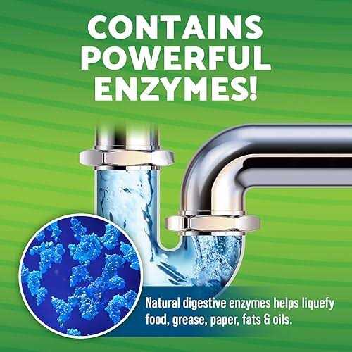 - Powerful enzymes digest food, grease, fats, oil and paper that clog drains