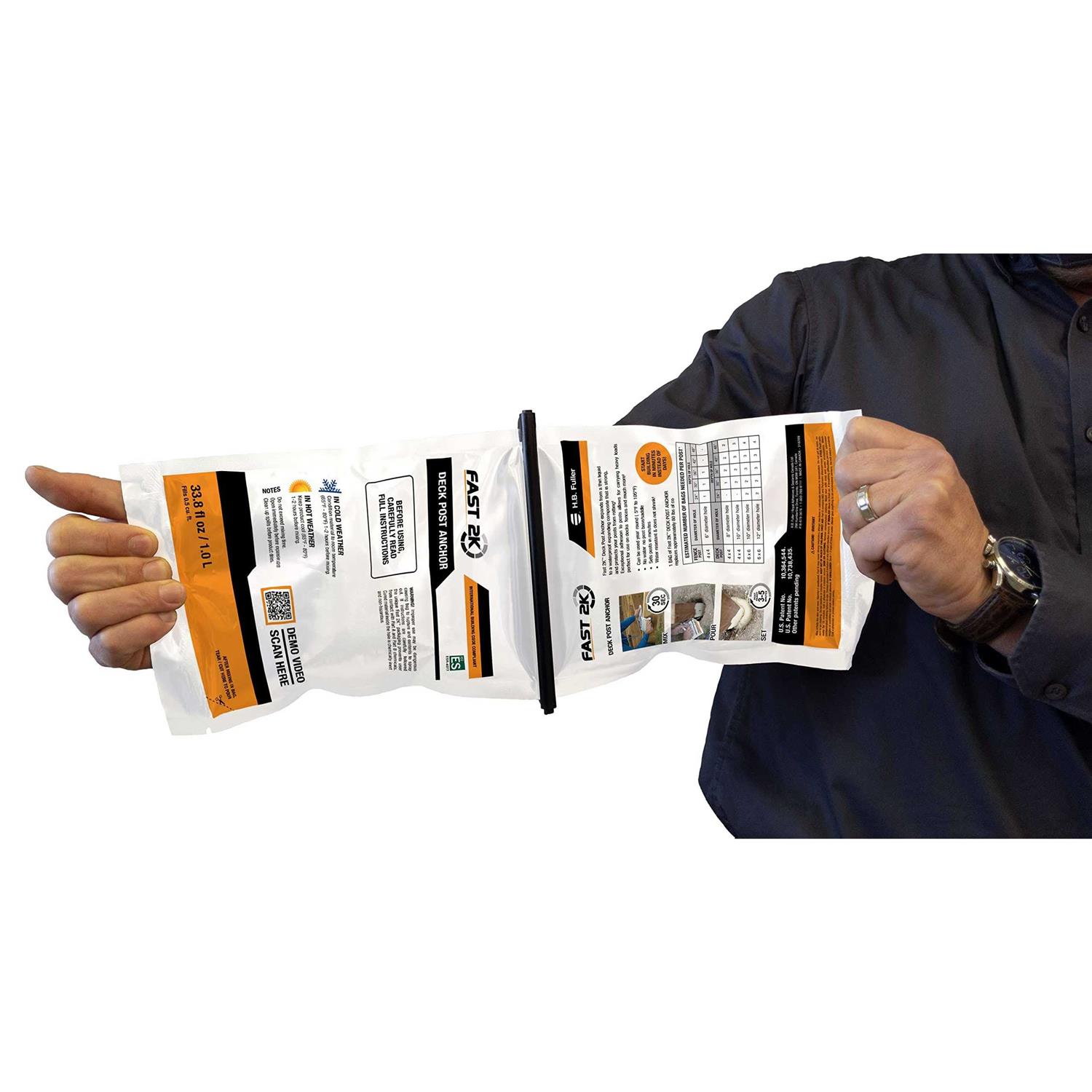 Instructions BR> *Mix the Two-component Kit – BR> *Pour contents into hole – BR> *Let sit for 15 minutes – BR> BR>BR>Each two-pound bag easily sets a 4 x 4 post (10cm x 10cm) in an 8 (20cm) x 3 (91cm) deep hole This means that you can set posts with smaller holes and get more from each bag BR>BR>Easier – BR>Spend less effort loading and unloading large trucks with Fast 2K A single two-pound bag replaces two 50-pound bags of concrete With the weight and size savings, you can expect a single pallet of Fast 2K to replace 20 pallets of concrete And, each bag can be stored and used outside in both summer and winter temperatures as high as 38c (100F) and as low as -30c (-20F) BR>BR>Stronger – BR>Fast 2K Deck is designed to adhere to wood, vinyl and metal posts, as well as the ground better than traditional concrete It even binds to itself with ease Additionally, Fast 2K Decks versatile formula is completely waterproof and hydrophobic (as opposed to concrete, which absorbs water) It prevents water from getting into the seams of each post, thereby decreasing expected rot, rust, deterioration, and other water-related damages BR>BR>Faster – BR>Stop forming, pouring and curing concrete Each bag of Fast 2K Deck mixes in 30 seconds and sets within 15 minutes, allowing installers to start mounting hardware in record time And, with ingredients contained in a single two-pound bag, setting up and striking is convenient and quick, allowing you to complete the job without the need for moving crews, equipment, or concrete BR>BR>Safer – BR>Fast 2K Deck is both safer for both the environment and the user No harmful chemicals are released into the environment when in use And, switching to Fast 2K Deck can help cut down on injury from moving heavy supplies and handling potentially harmful ingredients
