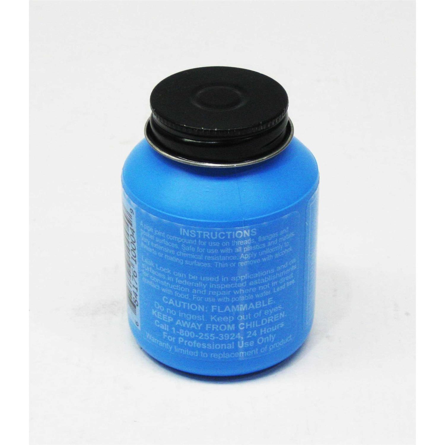 The Highside Leak Lock 4 oz Brush-Top Plastic Jar contains a resin-based brushable paste in a convenient jar that includes its own applicator. It is a soft-setting, permanently flexible compound that is ideal for sealing threaded joints, flanged joints, gasket surfaces and mating surfaces. The brush top makes it easy to put Leak Lock thread sealant exactly where you need it. The extended handle of the brush allows you to reach internal surfaces and tricky corners. This pipe joint compound is well suited for metal and plastic materials subject to heavy vibrations during use, as it remains flexible after setting. The containing jar closes tightly to keep the compound active. It fills voids as well as sealing joints and surfaces. Useful in many contexts, it is a good addition to your toolkit.