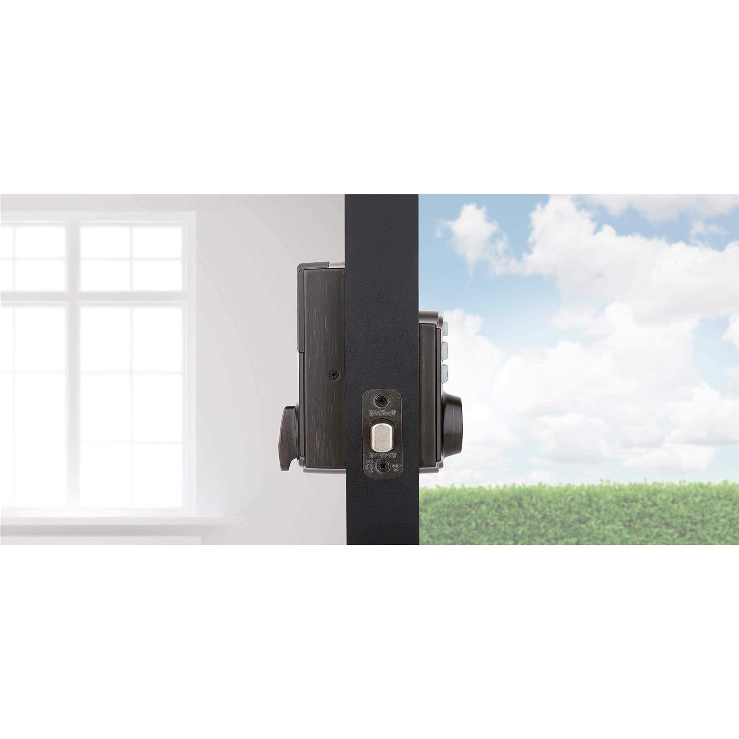The SmartCode touchpad smart lock with Home Connect technology enables the lock to wirelessly communicate with other devices in home. The lock allows the user (through a web enabled device) to remotely check the door lock status, lock or unlock the door and receive notifications. SmartCode is a 1-touch locking motorized deadbolt. with your personalized code, you can enter your home with the convenience of keyless entry and the back-lit keypad provides increased visibility. SmartCode is easy to install, program and use and operates on 4 AA batteries. It also features SmartKey Security as the back-up keyway. This single cylinder deadbolt can be locked or unlocked by using the keypad or key from the outside as well as the turn button from the inside. The Venetian Bronze finish is hand-rubbed to reveal unique bronze highlights and provides a rich and warm complement to the product’s style.