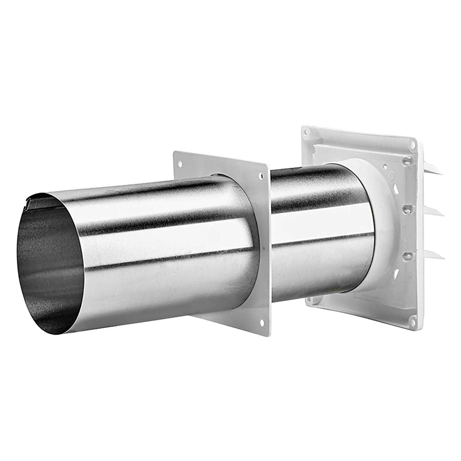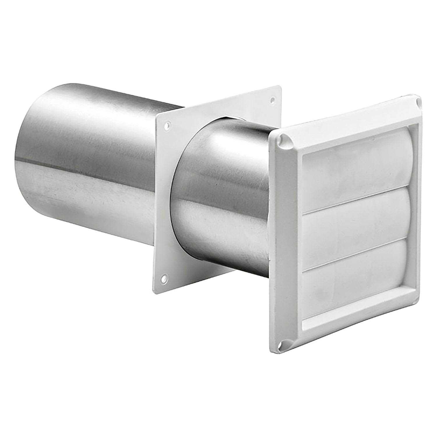 Opening/closing flaps prevents outside elements from entering the vent. UV inhibitor is used to help prevent the premature fading of vent. (1) 4, white plastic louvered vent with 11 tail pipe, (1) 4 white plastic trim plate. Opening/closing flaps prevents outside elements from entering the vent. Opening/closing flaps prevents outside elements from entering the vent. UV inhibitor is used to prevent the premature fading of vent.