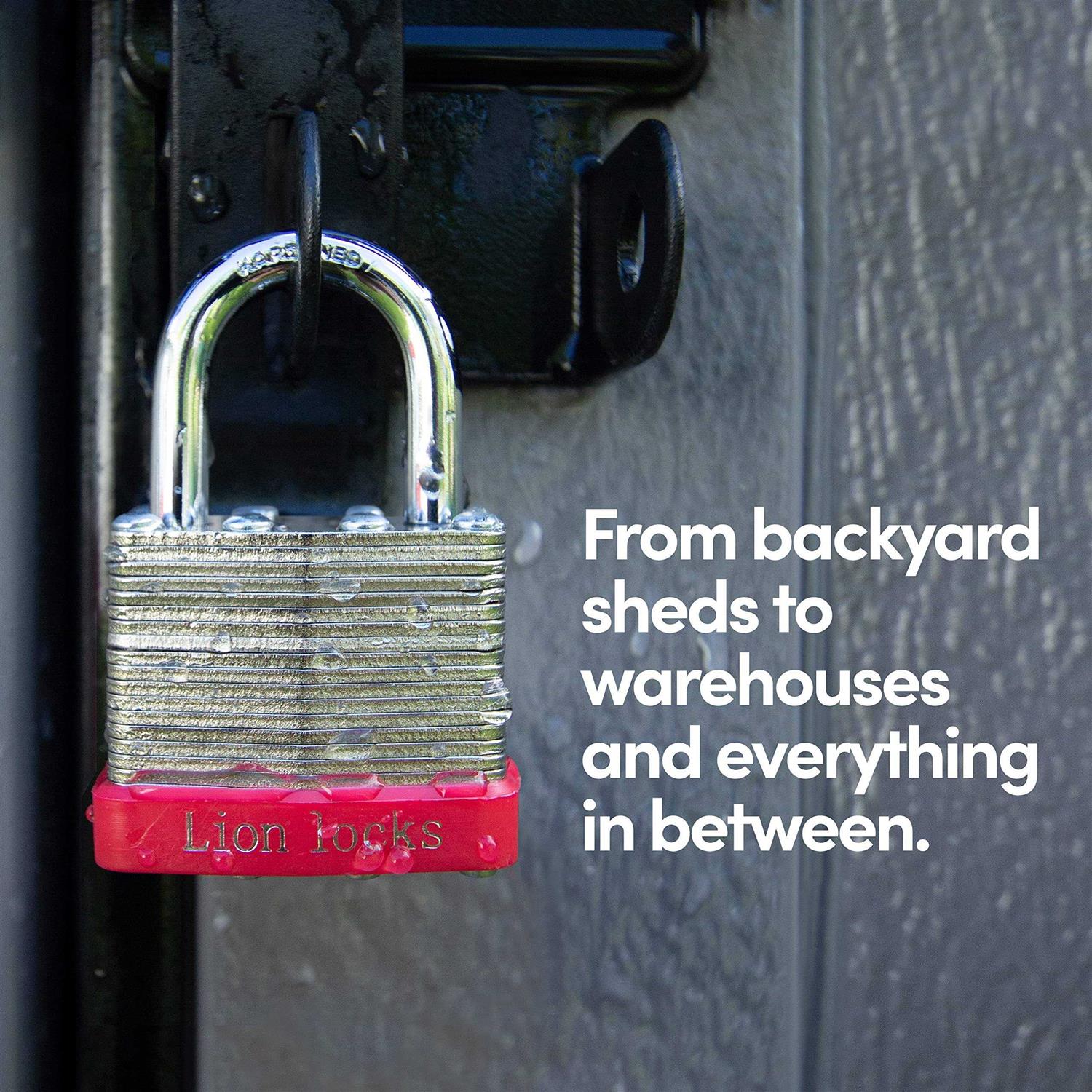 KEYED ALIKE SHORT SHACKLE LOCKS – Have mercy on your keyring! Don’t walk around with a separate key for every padlock you maintain, these keyed alike locks allow you to use just one key on all your properties! INDOOR & OUTDOOR LOCK: This locks classic design makes it great for indoor settings as a cabinet lock or gym locker lock, or outdoors as a cable lock, outdoor gate lock, storage sheds security lock, outdoor gate locks, or fence chain lock. EXTREMELY DURABLE – Made of Hardened steel with a strong and thick shackle, these locks are built to stand up to the sawing and cutting of thieves. Lion Locks are tested in the toughest of environments to make sure they won’t let you down! THEY CAN’T PICK ON YOU – The brass pin cylinder in these padlocks make it difficult to bypass and offer a longer life than that of locks with plastic or aluminum tumblers. Fans of Keyed-Alke Padlocks include business owners, maintenance teams, universities, and anyone that manages properties with multiple padlocks, locker lock, or cabinet locks with keys. With the convenience of having one key to open all of their padlocks, carrying bulky keyrings is a thing of the past. br The keys included in Lion Locks Keyed Alike Padlocks are identical; therefore, all keys open all the padlocks. Tested in the toughest of environments to make sure they won’t let you down, Lion Locks are the locks for your trailer locks, garage door locks, and locks for gates outdoor in general! br All Lion Locks padlocks have a laminated steel lock body, and this means that the lock is made up of plates of steel fastened with steel rivets for added security.”