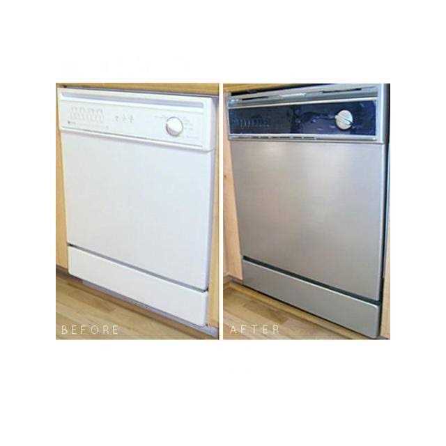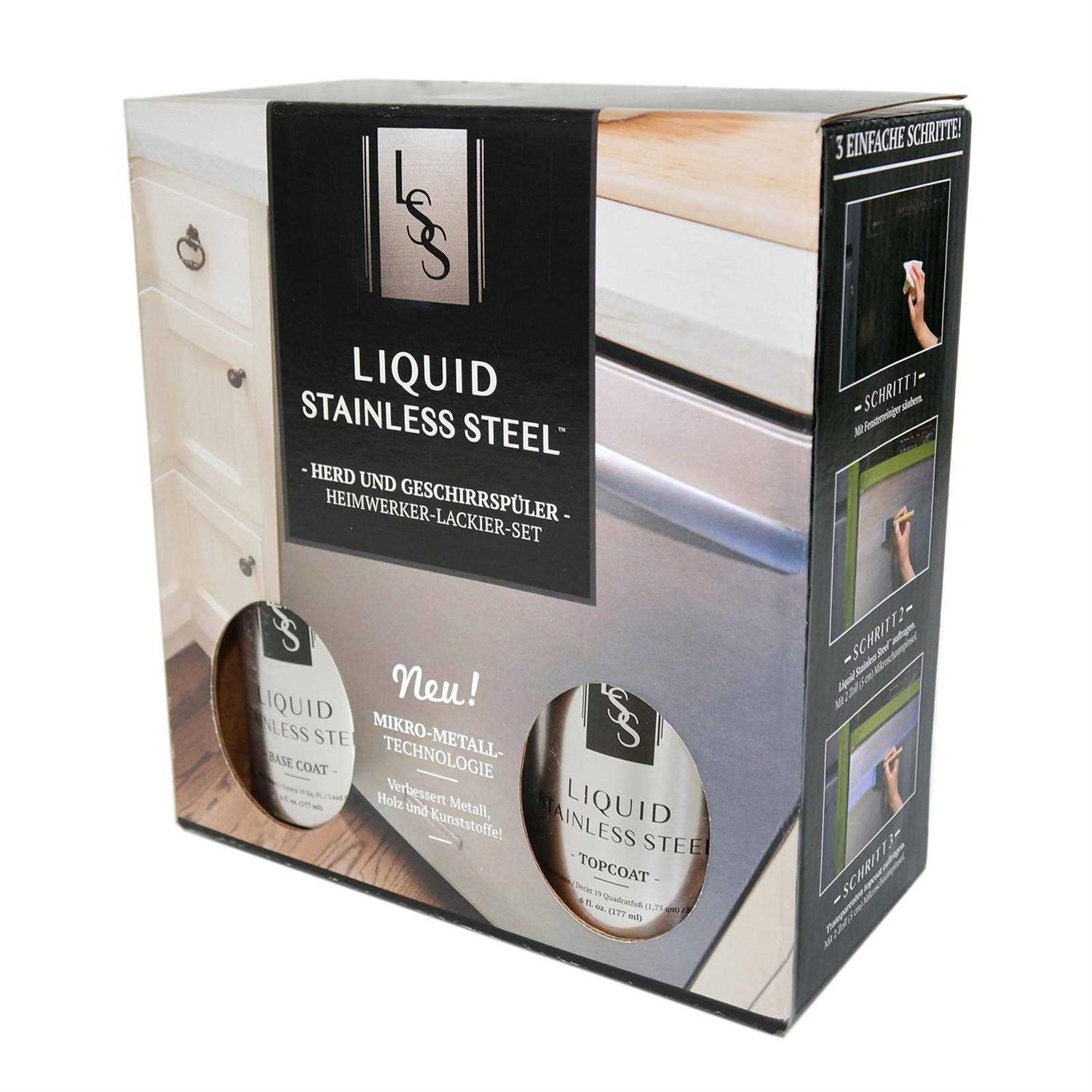 Liquid Stainless Steel Paint replicates the versatile look of contemporary stainless appliances. Crafted with bits of real stainless steel, its metallic shine and neutral, color-wise appearance accent a broad spectrum of kitchen decor. Keep your well-working appliances and upgrade them with paint. Liquid Stainless Steel is a single-day makeover process that will transform existing refrigerators, ovens, dishwashers, microwaves and other kitchen devices with the bright, clean look of stainless steel. Covers most common appliance materials such as metal, acrylic, fiberglass and painted composites, in three to five coats, and dries in a brushed, metallic finish. Each Range and Dishwasher Kit contains all necessary tools and covers 19 square feet.