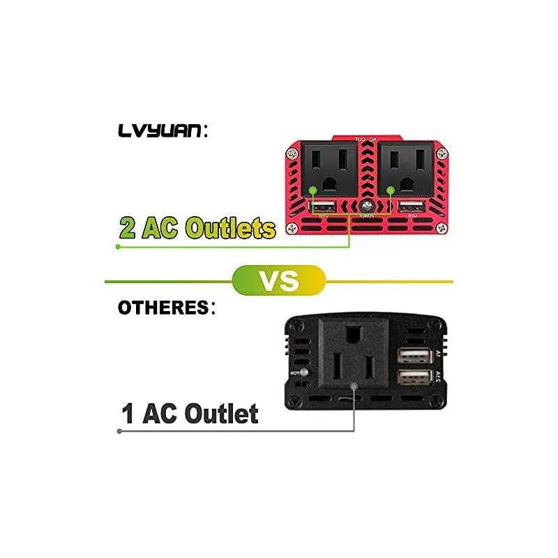 A Power Inverter for Car! What power inverter do you need for road trips, outdoors or vacations? YES, a LVYUAN Car Power Inverter. Compact and Lightweight. It hardly takes up space in your car and it’s a Credit Car-sized. But, it has a durable aluminum alloy housing. This inverter has more sockets: 2 U.S. standard outlets and 2 USB charging ports (Max 3.1A total output). Compact! Durable! Convenience! Safer to Use: 5 kinds of protection: Overheating, Under and Over voltage charging, Short c