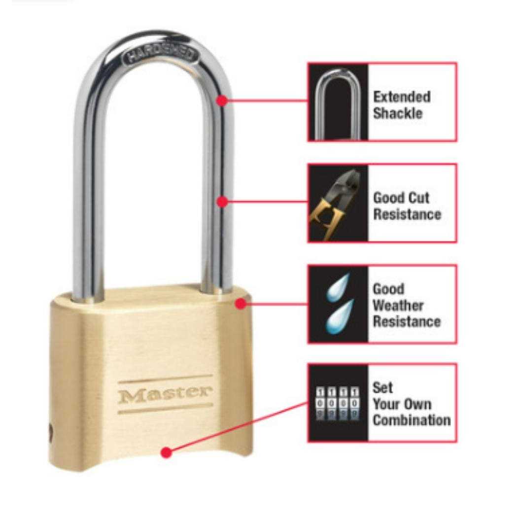- The brass with hardened steel shackle ensures a tough, durable lock.