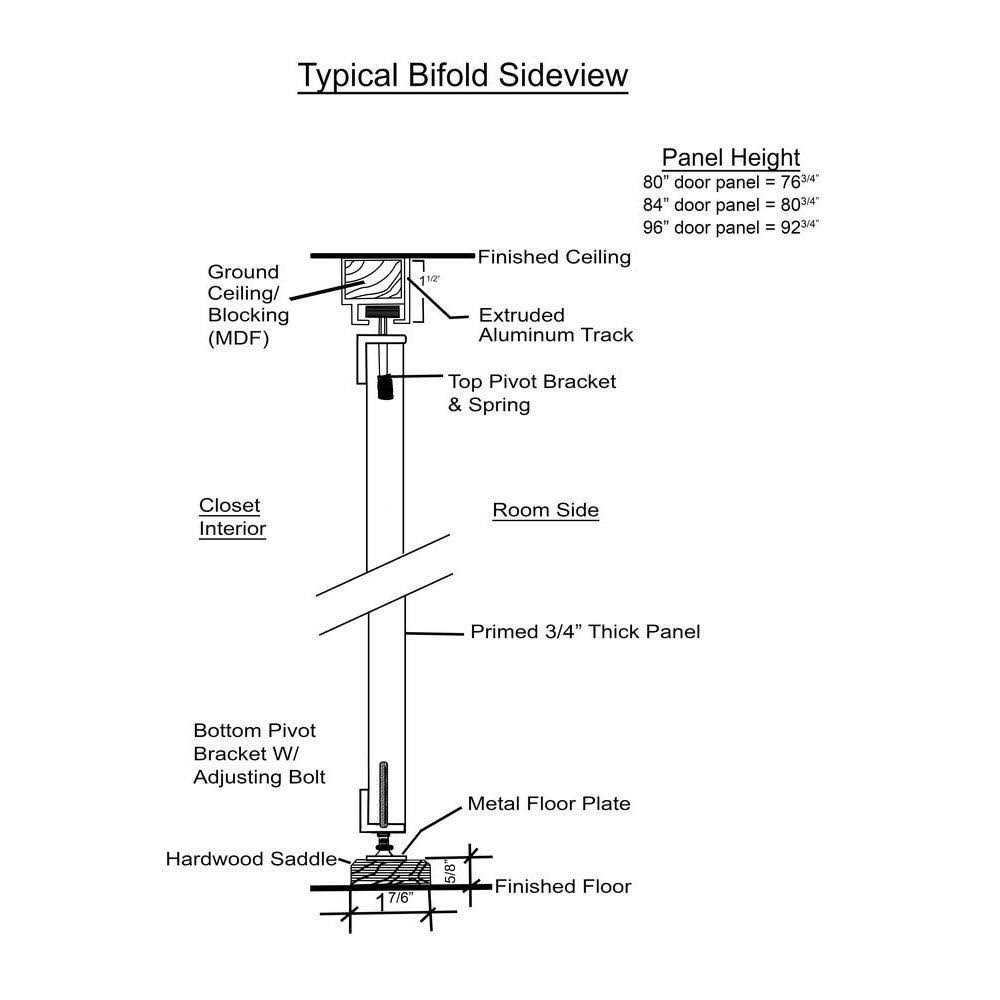 Frame-less style beveled edge mirror creates an upscale look. Solid backing for more sturdy feel and more impact resistant for peace of mind. White top track and trim and optional oak bottom saddle is easy to install. Bi-fold is for a 60 in. wide finished opening and is made of four 14-3/4 in. panels. Bi-fold height is adjustable from 79-1/4 in. x 80-1/2 in. for 80 in. tall doors.