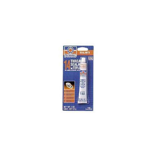 Permatex Thread Sealant with PTFE is a smooth white paste with a slight alcohol odor. It is a fast acting paste/lubricant designed to seal pipes, fittings and threaded connections against leakage and loosening. Seals pressure to working rating of pipe in air, oil, gas and hydraulic systems. Lubricates threads for quick, easy assembly and disassembly. Prevents galling and corrosion. Will not tear or shred like tapes. Remains pliable through a wide temperature range and outperforms other pipe dopes.