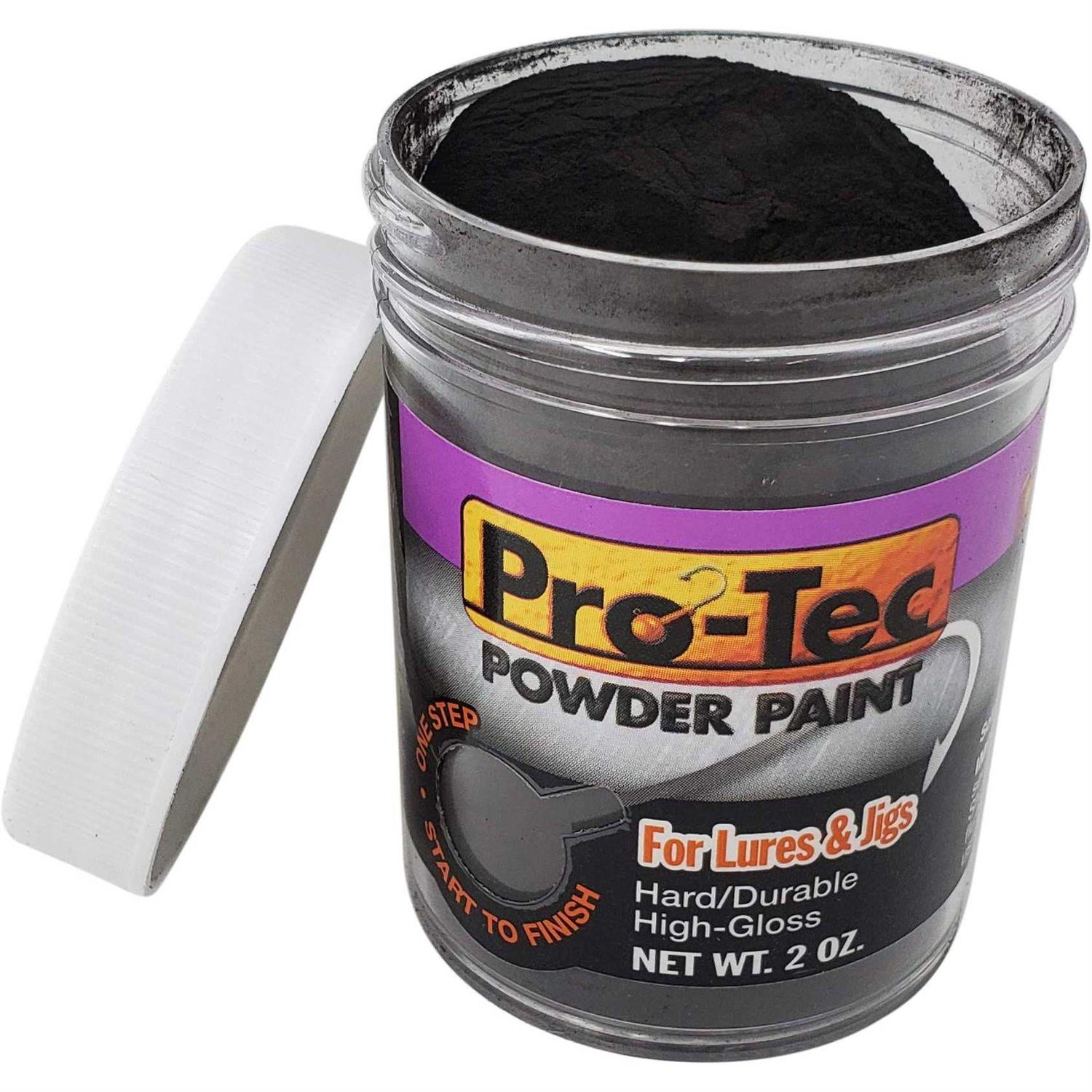 Component Pro Tec Powder Paint 2 oz. Black – Pro-Tec Powder Paint is quick and easy to use. Simply heat your jig or lure and dip it in the powder. The powder will immediately melt on contact and bond to the metal for a smooth, even, high-gloss finish. The UV Blast clear coat paint makes lures and jigs flash by reflecting fish-attracting ultraviolet light. Fish can detect UV rays, which penetrate deeper than visible light in murky water, making baits more reflective. Theres no drying time, no odor, no solvents, no mess, no mixing, no thinning. Environmentally safe, it has an indefinite shelf life. Two ounces will paint about 450 3/8-ounce jigs. Comes in 2-oz. containers.