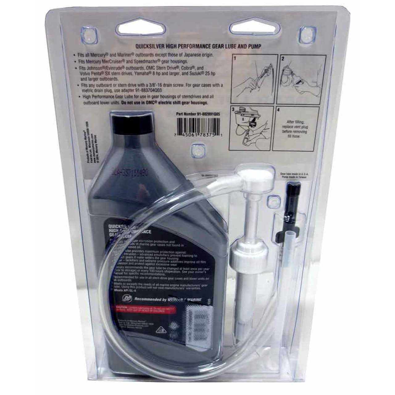 - Lower Unit Oil Kit includes one quart bottle of gear oil with hand pump