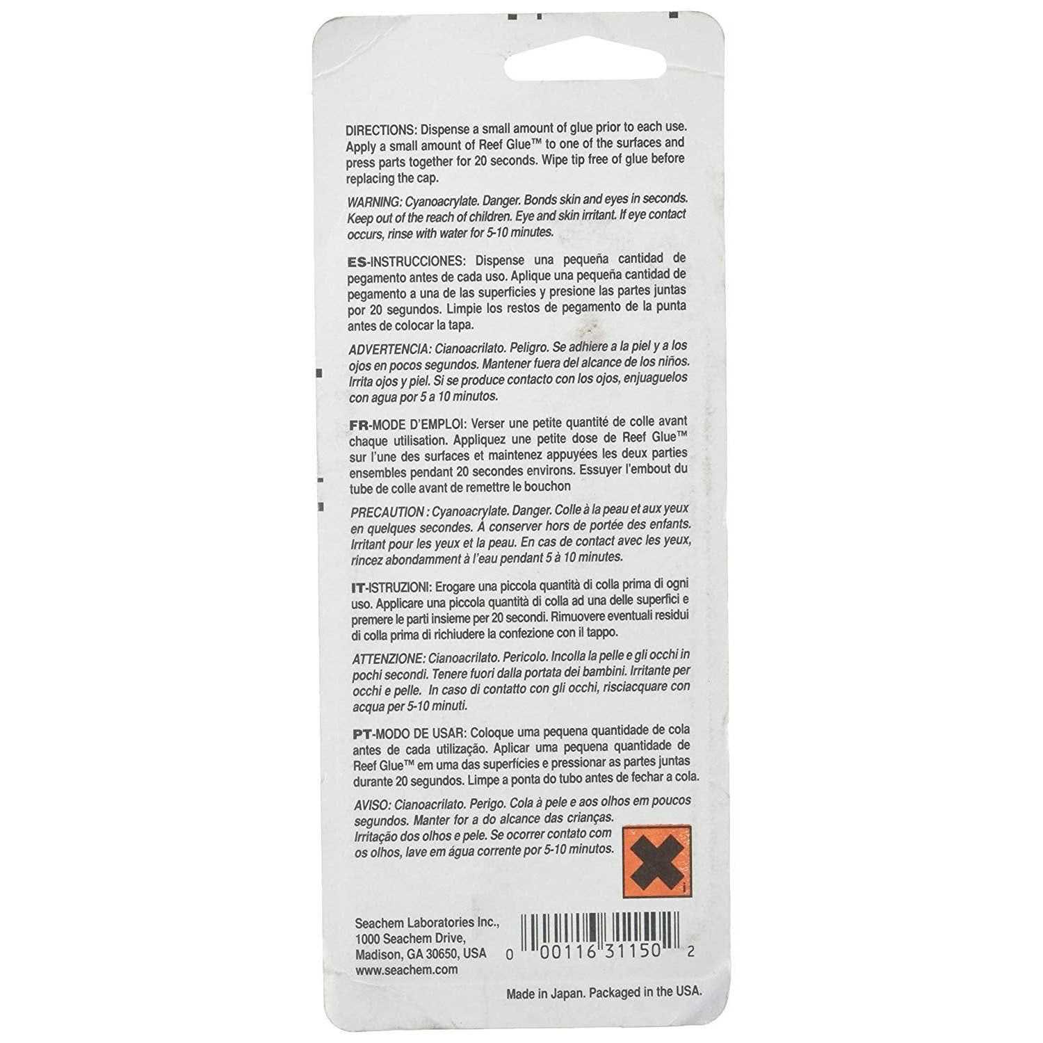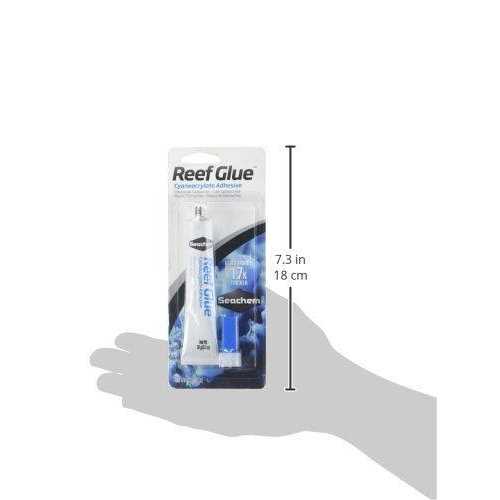 Seachem Reef Glue 20gm Mount coral frags and colonies to reef rock and plugs Bonds within seconds even underwater New formula is 17x thicker allowing for more control and less mess Reef Glue is a superior cyanoacrylate gel for gluing and mounting coral frags and colonies to reef rock or plugs. It bonds within seconds and has excellent control, hold and durability characteristics. It can even be used underwater. Reef Glue can be used for any aquascaping in freshwater or saltwater aquariums or for any plastics repairs. Reef Glue comes in an aluminum tube for extended stability beyond products contained in plastic bottles – it won’t dry up in the tube. With a new formula that is 17x thicker, there’s more control while gluing and less mess in application. Directions Dispense a small amount of glue prior to each use. Apply a small amount of Reef Glue to one of the surfaces and press parts together for 20 seconds. Wipe tip free of glue before replacing the cap.