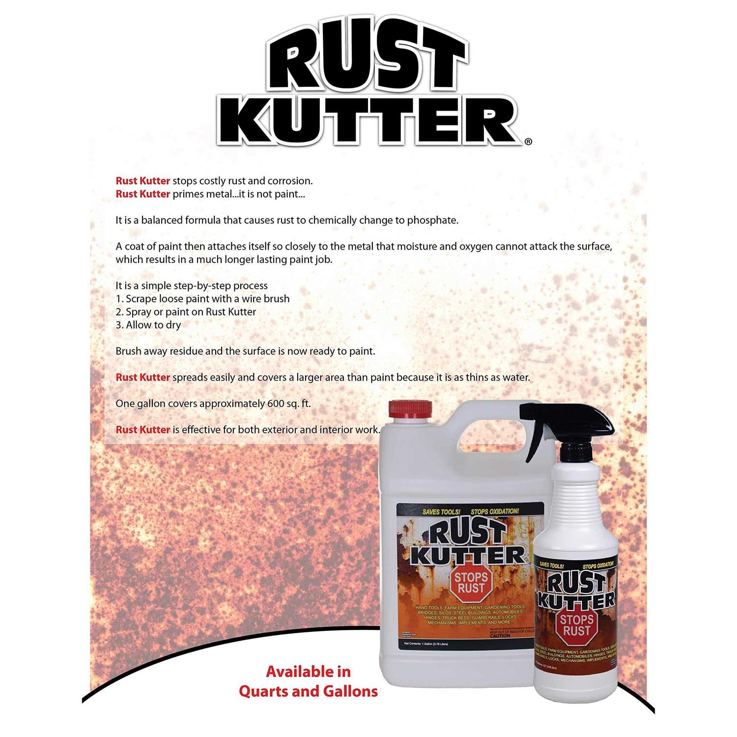 A rust converter is a specialized product designed to convert rust into a more stable and non-reactive compound that can be painted over. Rust converters work by chemically reacting with the rust, breaking it down into a stable, black compound that can be easily painted over. This product is ideal for use on metal surfaces that have rusted, such as car bodies, metal tools, and outdoor equipment. Rust converters can also be used to help prevent further rust formation by creating a protective barrier on the surface of the metal. Rust converters are easy to apply and can be used with a brush, roller, or spray gun, depending on the size and complexity of the surface being treated. Available in Quarts & Gallons Rust Kutter is a premium rust converter than can be used to prevent the spread of rust on metal. Has been on the market for over 15years. Rust Kutter is a safe and effective solution to restoring rusty metal. Can be used on farm equipment, garden tools, trailers, live stock equipment, and much more.