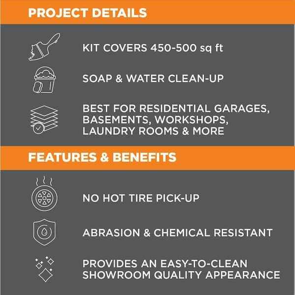 - Durable, 2-part epoxy formula works on interior concrete surfaces, such as garage floors, workshops, basements and more