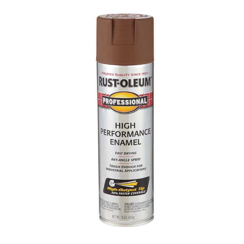 Rust-Oleum Professional High Performance Enamel Sprays provide superior coverage, hiding and corrosion protection. They can be applied to metal, wood, concrete and masonry. Designed to resist abrasion, prevent corrosion, and retain its color in the toughest environments. It features a high output tip that decreases project time and any-angle spray feature that allows you to spray in any direction, even upside down.