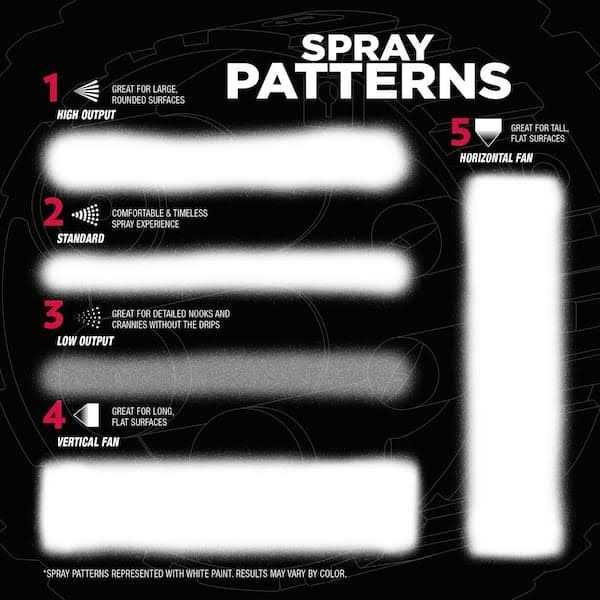 • Custom Spray 5-in-1 dial offers five spray paint patterns for ultimate control and superior results