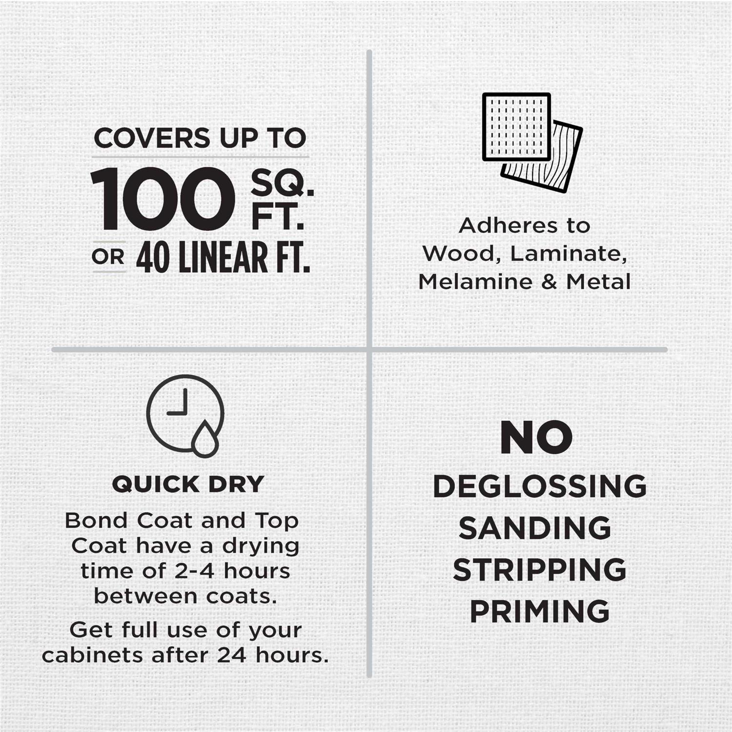 - Cabinet kit covers up to 100 square feet or 40 linear feet; ready for full use after 24 hours