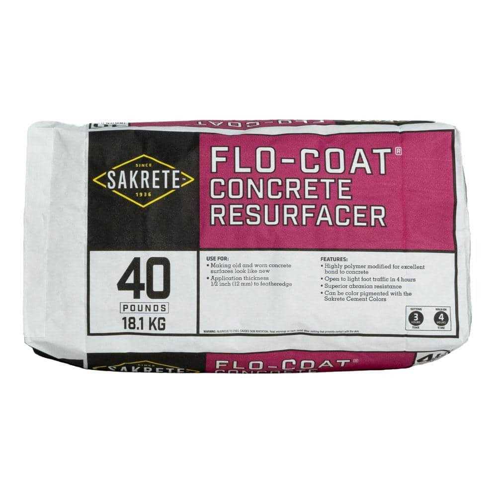 Sakrete Flo-Coat Concrete Resurfacer is a polymer modified, sand and cement resurfacing material requiring only the addition of clean water. For resurfacing concrete walks, slabs, driveways and patios. Can be applied in a flowable consistency using a squeegee or in a stiffer consistency using a trowel. Designed for applications from 1/2 inch down to a featheredge. 40 lb. bag. Coverage depends on thickness of application.