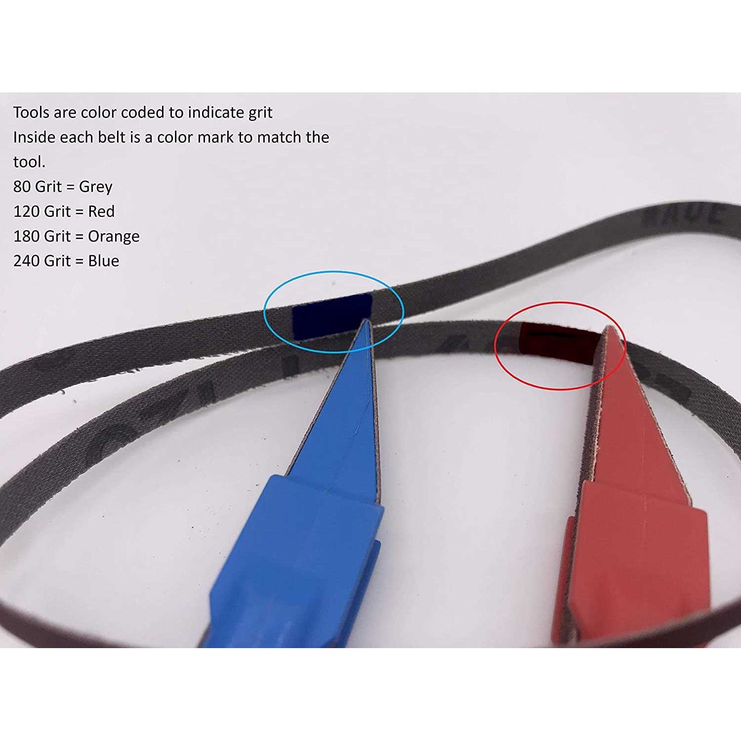 • Holds 1/4″ x 1-1/4″ Aluminum Oxide Belts