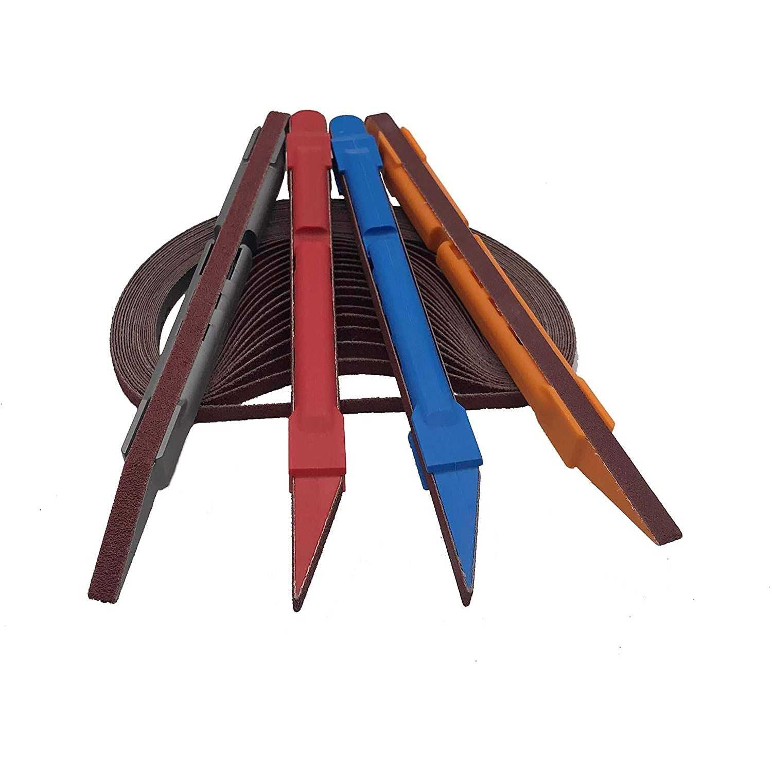 • The standard 24 piece kit includes 4 colour coded sticks and 5 strips of 80, 120, 180 and 240 grit