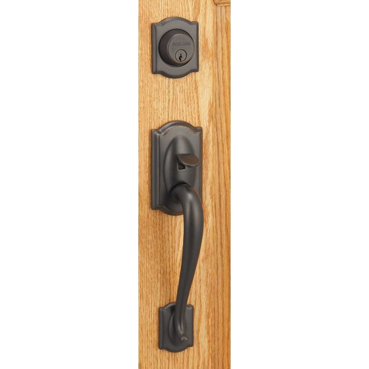 Schlage Camelot, Accent Aged Bronze Entry Handleset 1-3/4 in.