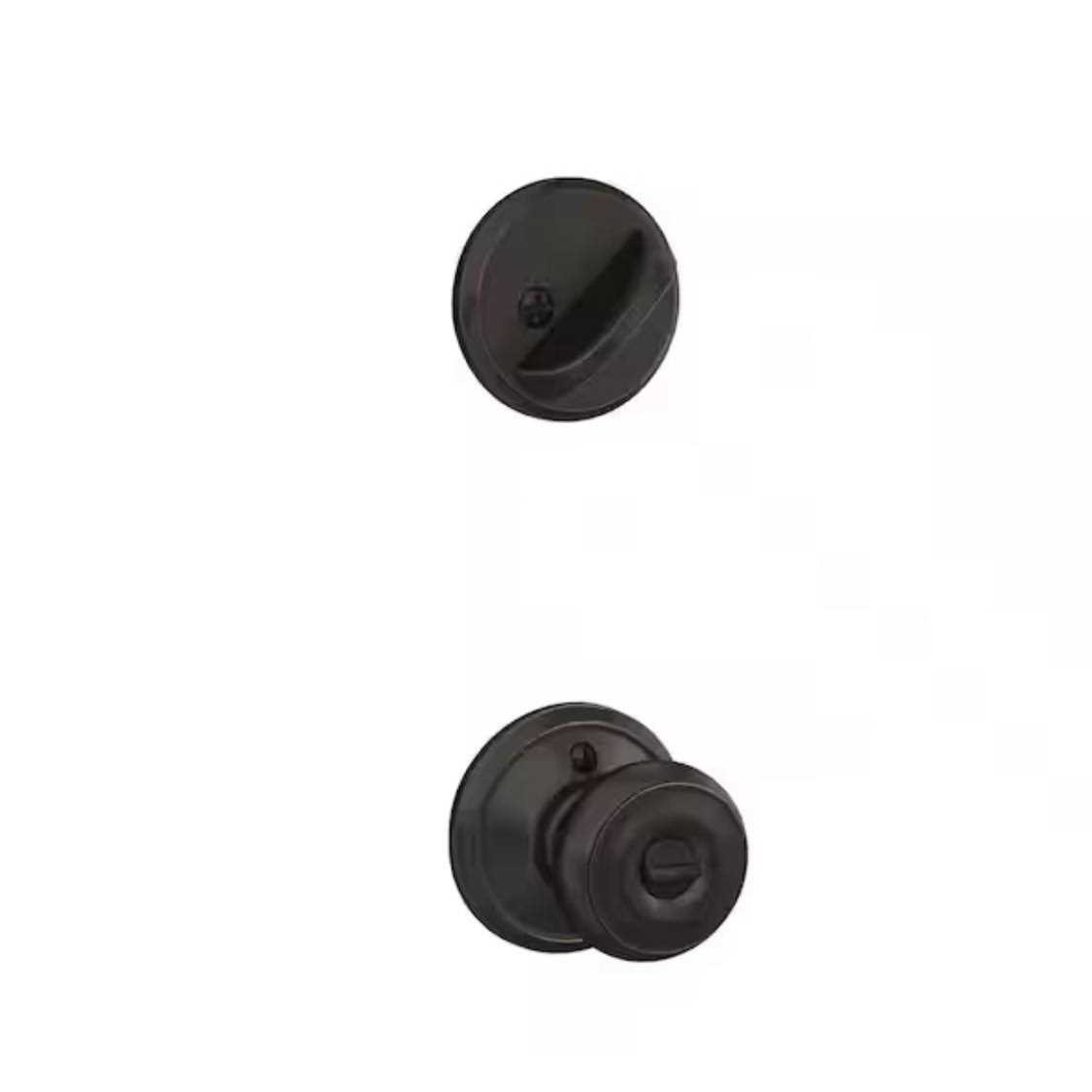Georgian Ent/dbolt Cmb K4 Abrz For heavy duty residential and light duty commercial doors. For keyed exterior doors. Both knobs lock or unlock by key outside or turnbutton inside. Deadbolt thrown or retracted by key from outside or by inside turn unit. Includes one No. 360 single cylinder deadbolt and one No. Deadbolt has a 7/8 housing and 1 throw with concealed hardened steel roller to prevent cutting or sawing. Entry lockset of solid wrought brass with pressure caty features.