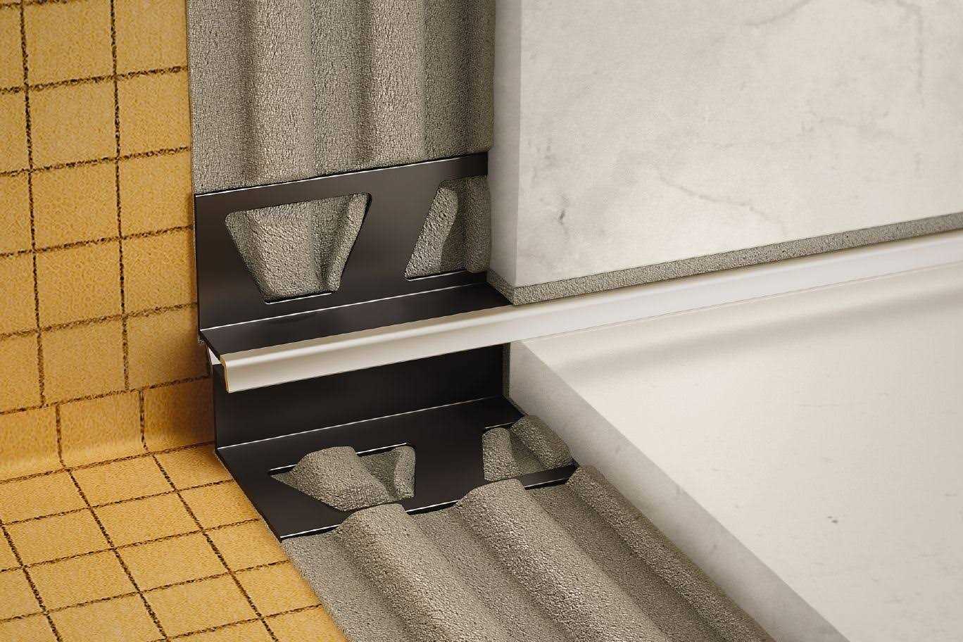 Schluter-DILEX-EKE is an perimiter joint profile used to seperate tile fields at floor-to-wall joints and transitions, forming the visible surface between the two. The profile is specifically designed for tension relief of tile fields, preventing damage due to movement over time. The EKE profile is built from PVC for long term durability, while the classic grey finish adds a touch of class to any tiled room.