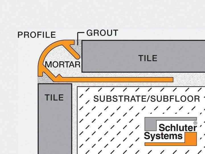 Rondec is a finishing and edge-protection profile for tiled edges and outside wall corners. The reveal creates a rounded edge along the tile. It is ideal for finishing the edge of tiled backsplashes, countertops and niches. The Rondec profile has an integrated joint spacer which ensures a uniform grout joint between the tile and profile. Inside and outside corners for the Rondec profile are available separately.