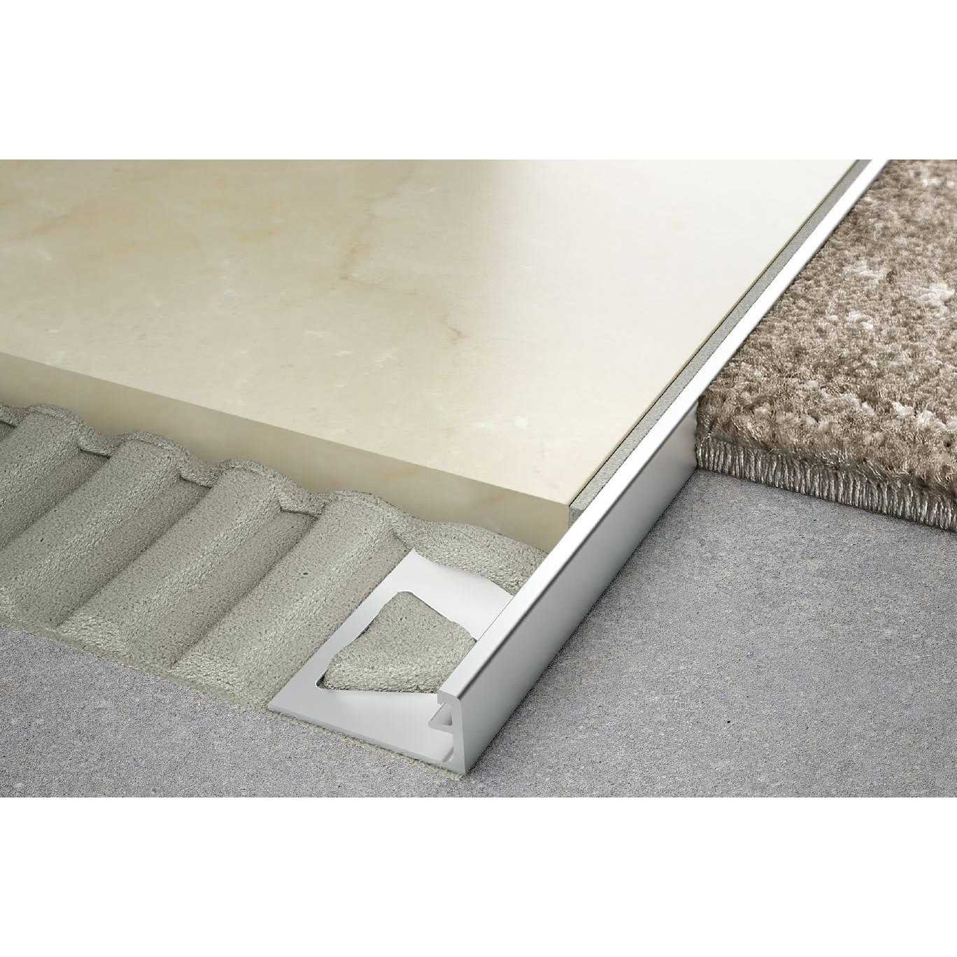 The Schiene profile is designed to finish and protect tile edges on floors and walls. It is ideal for creating floor transitions between tile and another surface of the same height such as carpet or wood. Schiene has an integrated joint spacer which ensures a uniform grout joint between the tile and profile.