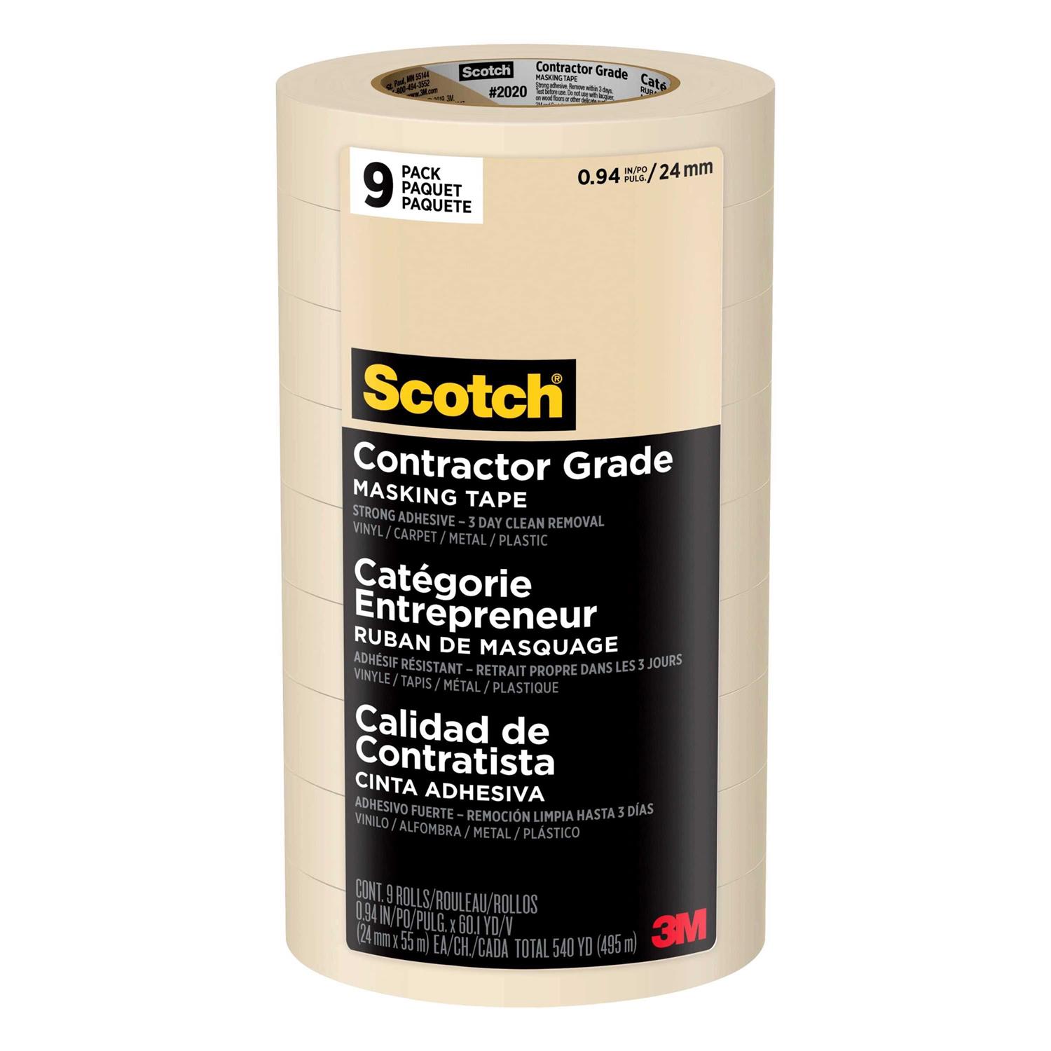 Scotch Contractor Grade Masking Tape is a general-purpose masking tape designed for use on non-damageable surfaces. Use on vinyl, carpet, metal and plastic for the protection you need to get the job done. This tan-colored masking tape pack contains adhesive tape that can stay on for up to three days on interior surfaces and one day on exterior surfaces and removes easily without leaving behind a sticky residue. For those looking for a masking tape 1 inch length, this product is a perfect choice because its made with strong adhesive to be used both indoors and outdoors. Made from 50% renewable resources with a core made from 70% post-consumer waste, this tape is made in a site certified for energy management to provide you with a sustainable painting product. The application is simple. Make sure the surface is clean, dry and dust-free so your masking tape sticks properly. Apply the tape onto the surface while pressing down firmly. When using as a painter’s tape, let the tape set for 30 to 60 minutes before painting. Removal is just as easy. Wait until paint is dry to the touch before removing the used paint masking tape. Lift the tape up by slowly pulling it back on itself, then remove it at a 45-degree angle. With a full range of adhesive solutions, Scotch Brand delivers confidence in superior results to get the job done well and effectively the first time. By choosing to use the right tape, youre choosing to create a better result. From the brand that is No. 1 trusted by professional painters (1), Scotch Brand offers a full line of tapes specifically designed for the various demands of the project/job. (1) ScotchBlue and Scotch brands are ranked as the most trusted based on a 2020 Kantar US Brand Health Survey.