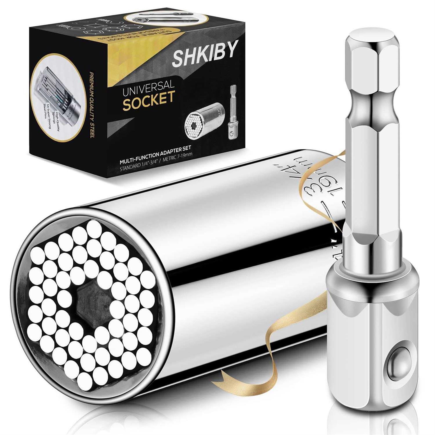 SHKIBY Universal Socket Tool Gift for Men Dad – Socket Set with Power Drill Adapter Cool Stuff Super Universal Socket Grip Gadgets 1/4 – 3/4 (7-19mm)
