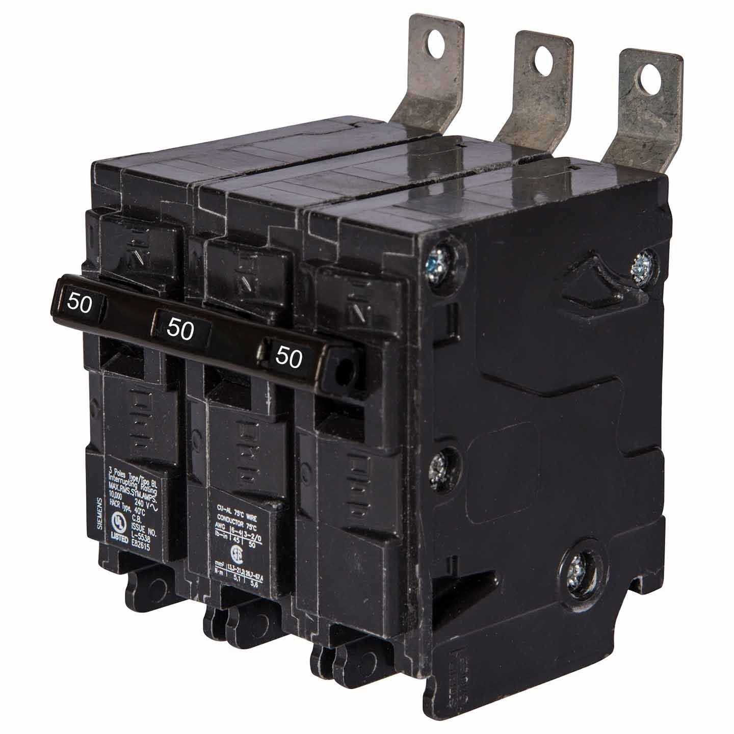 B350 Siemens 3 Pole breakers are specifically designed for industry that require constant demand for full power to equipment. These bolt-on breaker minimize arching which causes damage to the power bus. Bolt-on breaker are more expensive than their counter part the plug-in residential style. Breaker are also switch duty rated and rated for use with air conditioning, heating and lighting.