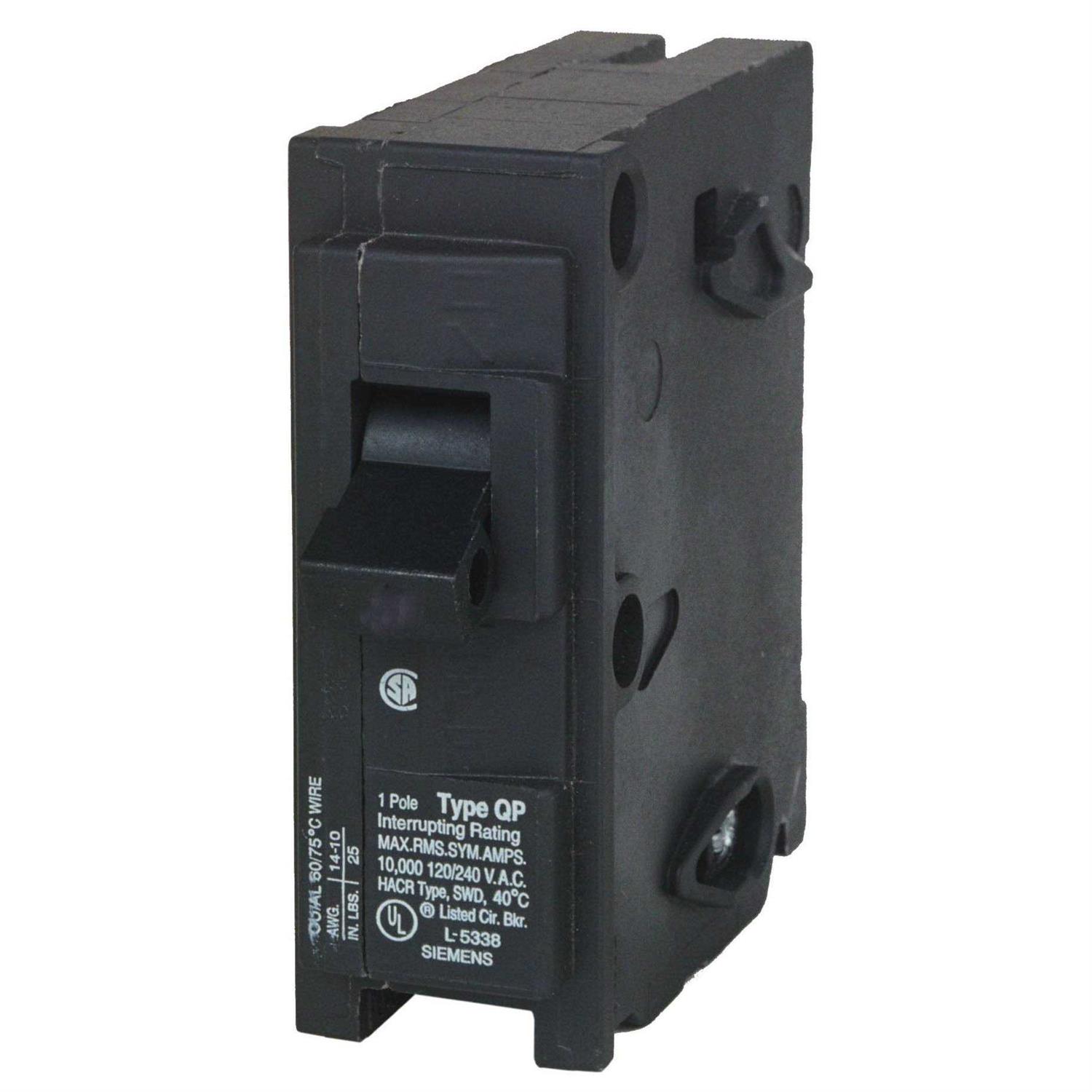 Siemens 1-Pole Plug-in circuit breaker features high quality thermal magnetic case for extra protection. Circuit breaker has continuous current rating of 20 Amps at 40 deg C and voltage rating of 120 VAC. It has an interrupt current rating of 10 kilo-Amps and accommodates wire range of 14 – 6 AWG. It has durable lug in/lug out terminal connection and may be used in 1-Phase load centers. It has standard interrupting capacity and reliable QP frame of size 1 Inch with current rating of 125 Amps. Circuit breaker offers long-time instantaneous functions to perform efficiently. It is ideal to use in Siemens load centers, air conditioning, fluorescent lighting, heating, refrigeration and distribution applications. Circuit breaker is UL listed.