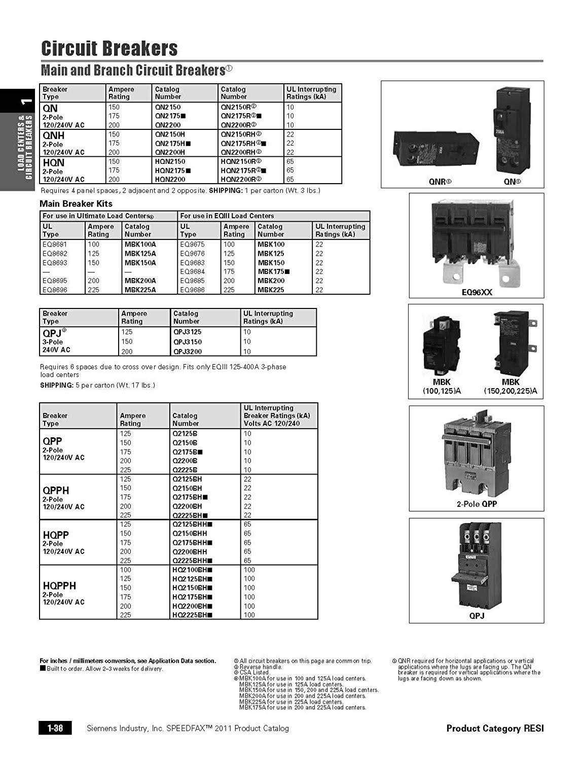 Siemens Main breaker kit operates at a current rating of 125 Amps and has an interrupt current rating of 22 kilo-Amps. It finds use on 125 Amps load center. It operates at a voltage rating of 120/240 Volts. It is used for converting a lug load center into main breaker load center. Kit is UL listed.