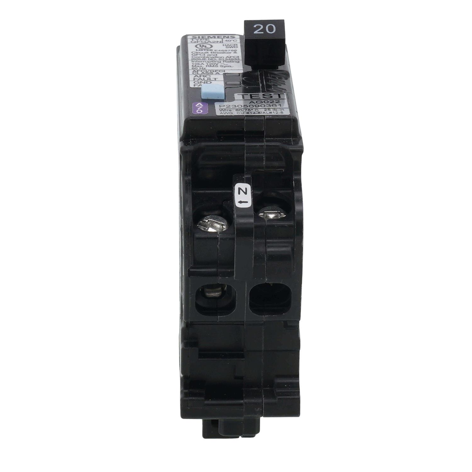 Siemens Q120DFN Circuit Breaker, AFCI, GFCI, Low Voltage, 20 A, 1 Pole