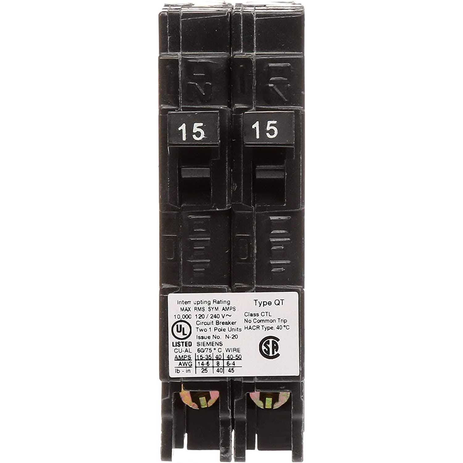 - QT dual beaker features two single pole, 15 Amp 120-Volts interchangeable