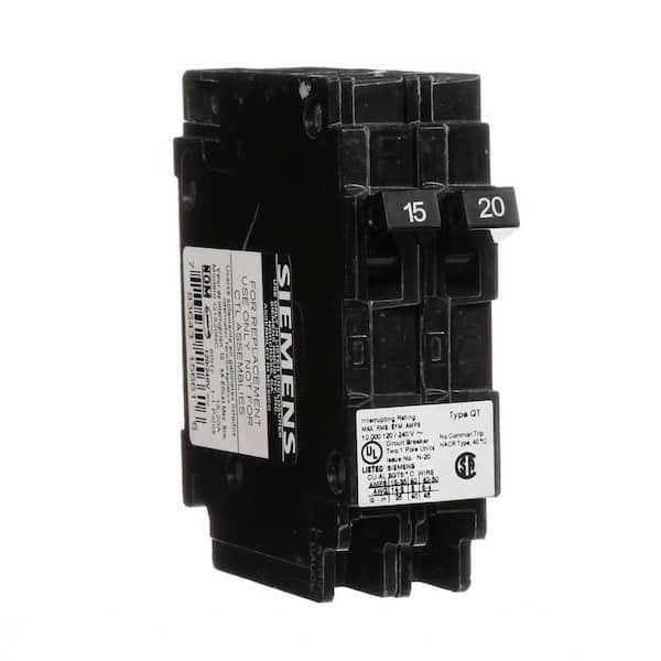 Siemens space saving, plug in circuit breakers are intended for use in Siemens, Murray, ITE and Gould load centers and meter combinations that are rated to accept type QT breakers. Check wiring diagram to confirm. These duplex breakers provide 2 Single Pole breakers in the space typically required for only one standard breaker. These duplex, 1/2 in. frame breakers are ideal when new circuits are required in a panel that has no available spaces. The non-current limiting breakers are designed for use in Siemens panels manufactured prior to 1968. Siemens type QT dual circuit breakers are 1 in. wide and consist of (2) 1-pole breakers, in varying combinations of ampere ratings from 15 to 30 Amp. All type QT circuit breakers are plug-in style and load terminals are provided with the units. They are rated for 120/240-Volt AC and calibrated for 40C maximum ambient applications. The standard interrupting rating is 10k AIC.