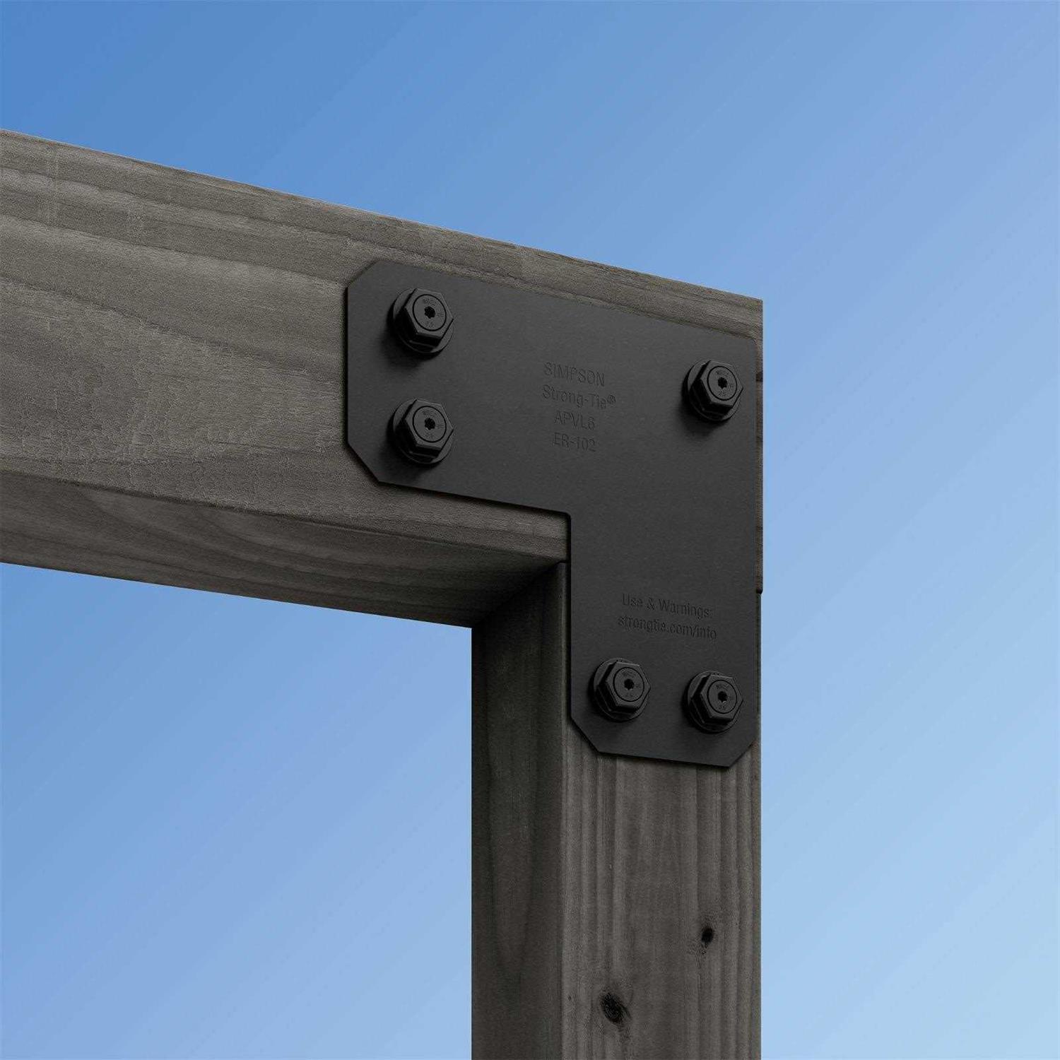 Simpson Outdoor Accents line of L straps are the perfect solution for outdoor projects where 2 pieces of lumber intersect at a 90 degree angle. These L straps are Zmax finished first and then black powder coated for long lasting outdoor use. The Avant collection features chamfered corners and straight edges for a very clean look when installed. These straps are installed with the Outdoor Accents structural screws and hex head washers, not included.
