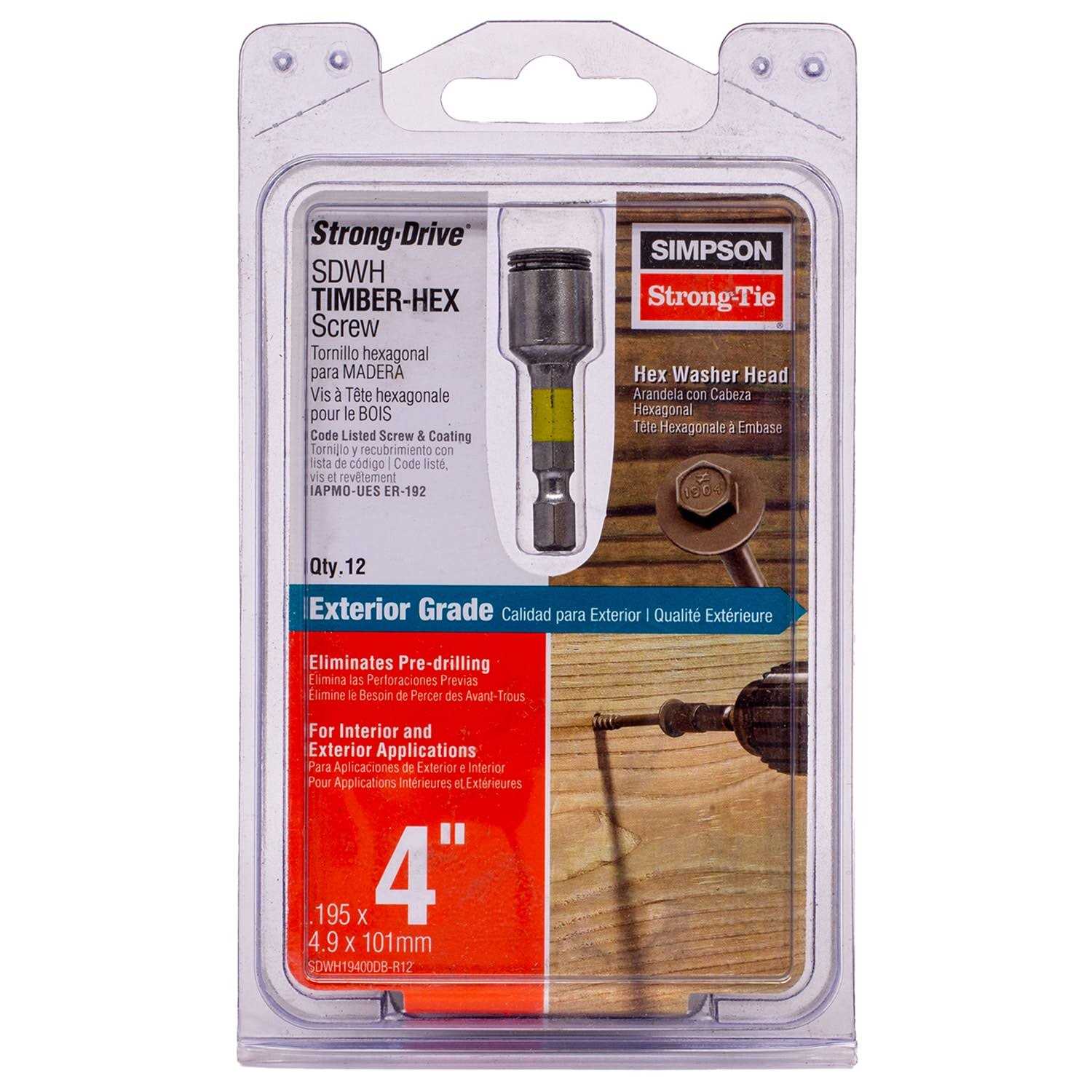 Simpson Strong-Tie 5/16-in x 4-in Double-Barrier Strong-Drive SDWH Timber-Hex Exterior Wood Screws (12-Per Box) | SDWH19400DB-R12