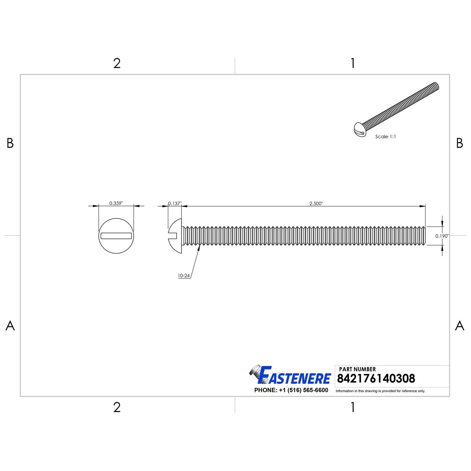Fastenere 10-24 x 2-1/2″ Slotted Round Head Machine Screws Stainless Steel 18-8 Qty 25