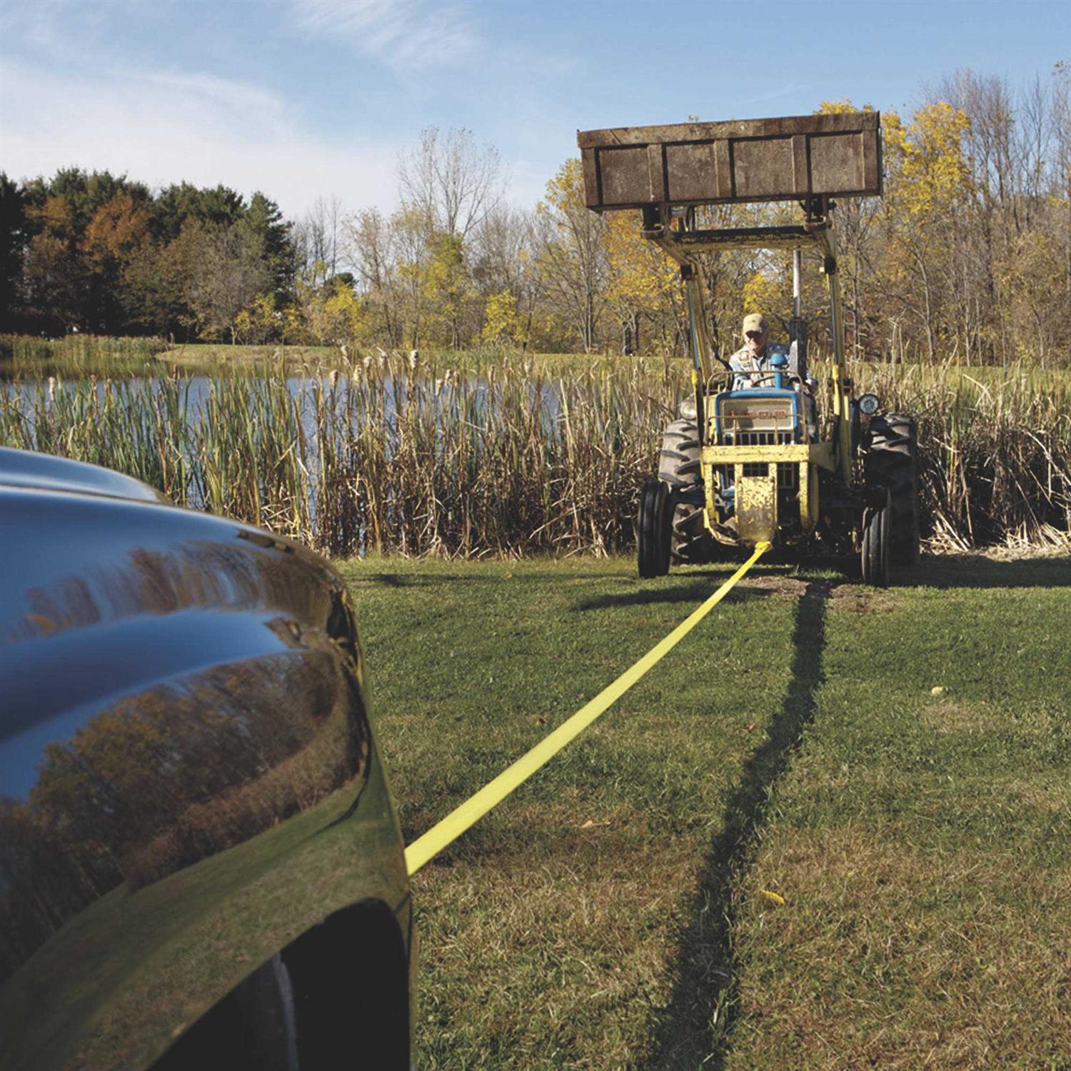 The Recovery Strap can be used for recovering stuck vehicles such as trucks, tractors or small machinery . The strap is extra long and features reinforced loop ends for longer life. The strap is safer and easier to use than chains.