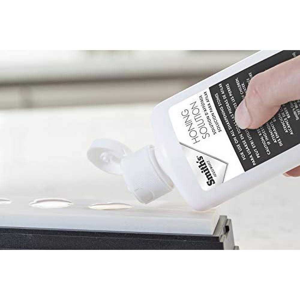 Smith’s specially formulated HON1 Honing Solution is nonpetroleum based and features built-in stone cleaning agents and rust/corrosion inhibitors. It is excellent for lubricating your Arkansas or Diamond Stone when sharpening. Never use an Arkansas Stone without some kind of lubricant, or you will clog the pores and cause it not to sharpen properly.