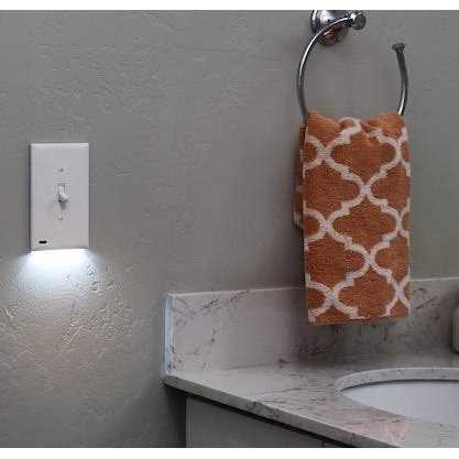 SwitchLight is a light switch cover plate with built-in LED lights that are activated by an automatic on/off sensor. It provides beautiful accent, pathway, and night lighting for your home, and makes it easy to spot your light switches in the dark, no matter how sleepy and disoriented you may be! SwitchLight is perfect for hallways, bathrooms, kitchens, and more. Its LED lights provide up to 25 years of reliable illumination, and it includes a switch to easily toggle between bright, dim and off settings. NOTE: This SwitchLight is designed for 3-way light switches, where two light switches control the same overhead lights. It also works on standard single-pole switches.