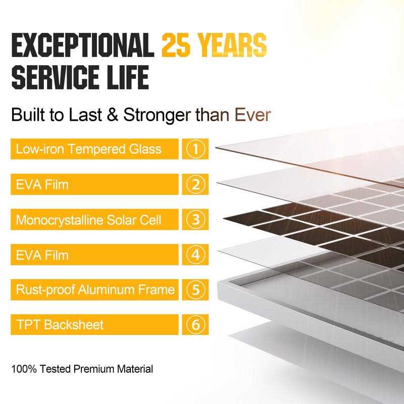 Outstanding Quality20W solar panel adopts well-built monocrystalline cells with high conversion efficiency up to 24%. Using Tempered glass, weatherproof film and plus aluminum frame for excellent extended outdoor use, which can withstand storms for more than 10 years.Waterproof controller Improved waterproof case eliminates the problem of controller water failure. Advanced PWM algorithm can fully protect the battery: under/over voltage, output overload, short circuit and anti-back connect protections. It can greatly enhances 20% charging efficiency with no additional self power consumption.