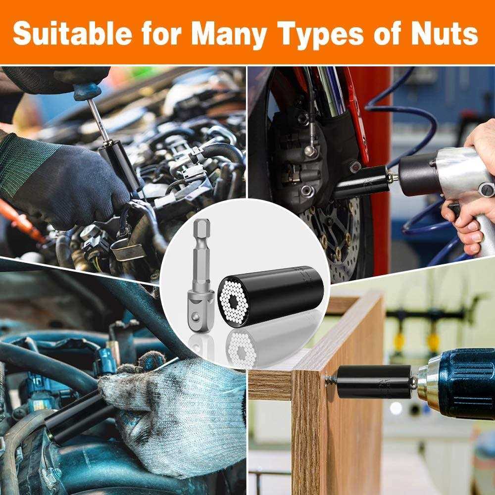 Socket Wrenches by SOOFUN. Details:The DIY Best Tools Whether professional or hobby craftsman, Universal Socket will be used, Universal Socket Wrench Set suitable for standard 1/4 to 3/4inches and metric 7 mm to 19 mm nut and other various shape and size objects. This Universal Socket kit with unique design can automatically adjust to any size or shape, Durable, Compact and easy to carry. A helpful and practical gift What You Can Get 1x Universal Socket Professional After.