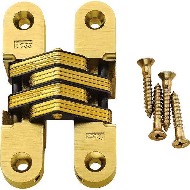These versatile hidden hinges offer exceptional strength, security and smooth operation. Regular hinges support weight on a single knuckle located outside the jamb, but these hinges place the weight on multiple moving pivot points within the hinge body so they can bear heavy loads. They seat flush in a deep mortise to resist sagging, remaining inconspicuous and tamper-resistant when closed. The interlinked laminated steel plates move smoothly and silently, opening 180°. Easily installed with a drill in wooden doors and frames (see note below). Cast in heavy-duty zamak, with a satin brass, satin chrome or black finish, these hinges are designed to last a lifetime. Instructions, screws and drilling template included. Note: You can use a drill to cut mortises for SOSS hinges; however, using a plunge router with spiral upcut bits gives better results since they cut cleanly and clear material efficiently. You can easily make a router-mortising jig using the included drilling template. To determine the size and number of hinges needed per door, consult the Specifications tab.