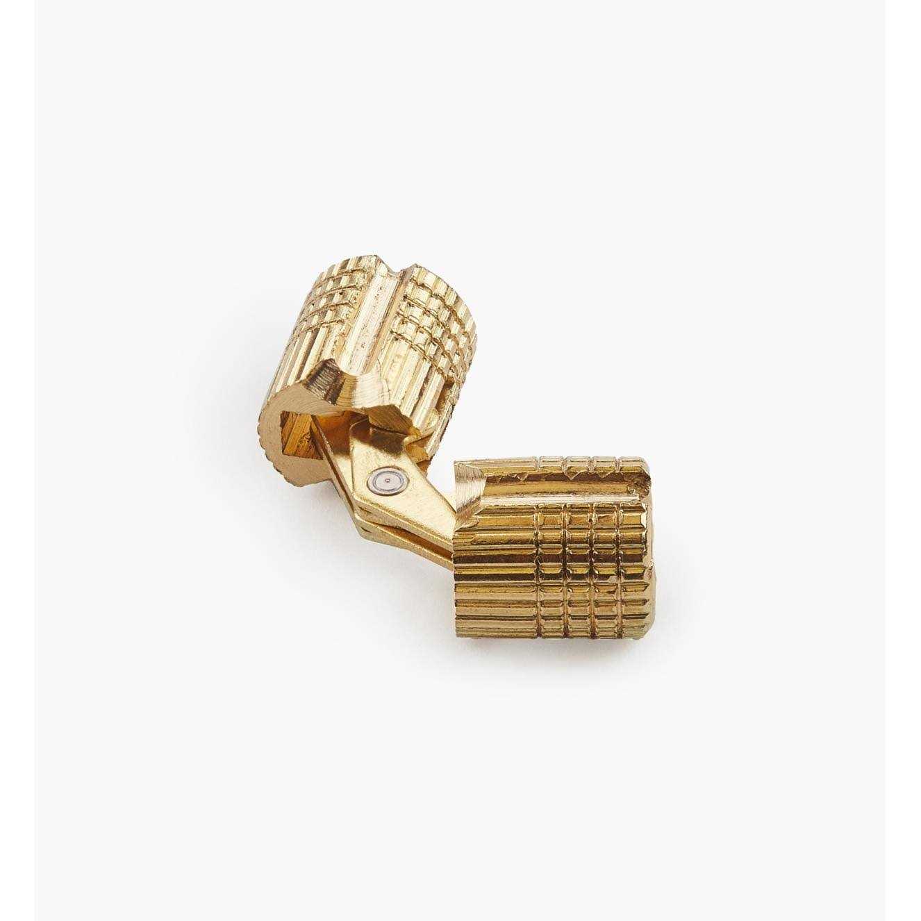 Used where you want a fully hidden hinge, these are machined from solid brass, have steel linkages, and open 180°. Simply drill the appropriate sized hole, insert the hinge, and turn the set screw on the exposed face to wedge the hinge in position. For heavier load applications, a flat-head screw can be driven through the machined recess on the side opposite the set screw to further wedge and retain the hinge in place. The barrel bodies are also toothed to provide an additional mechanical lock, or to allow for optional gluing. Size given is the barrel diameter – use the same metric size for drilling. Prices given are per hinge.