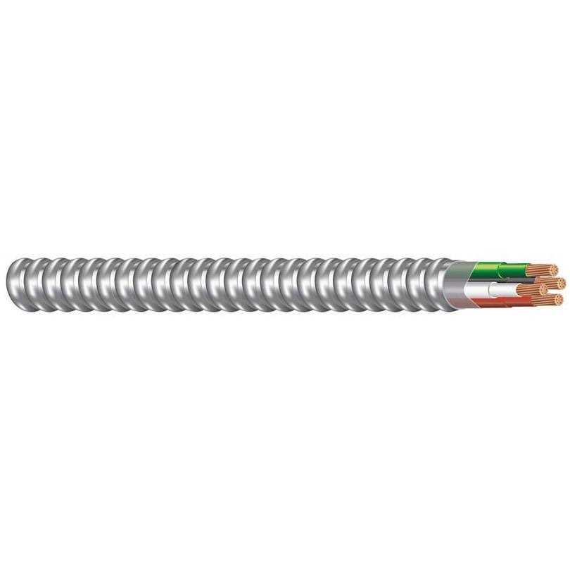 Pre-installed conductors within an overall protective metallic interlocked armor. 45 Percent lighter than steel mc cable. Cable reverse wound for ease of pulling and installation. Conductors – solid bare annealed copper per astm b-3, stranded copper stran ding per astm b-8 for conductor. Conductor insulation rated 90 degree celsius dry, 75 degrees celsius wet at 600 volt. Conductor insulation is flame retardant, heat resistant pvc with flame, oil and gasoline resistant nylon jacket. General applications: b ranch, feeder, and service power distribution in commercial, industrial, institutional, and multi-residential construction/facilities, power, lighting, control, and signal circuits, concealed or exposed installations, installed in raceway/c onduit, fished or embedded in plaster, installed in cable tray, and as aerial cable on a messenger. Ul classified 1, 2 and 3 hour through penetration firestop systems: w-l-3110, w-l-3113, w-l-31120, w-l-3121, c-a-j-3115, c-a-j-3140, c-a-j-3142, c-a-j-3202, c-a-j-4065, and c-a-j-4066. Ul listed. Please accept our apologies.