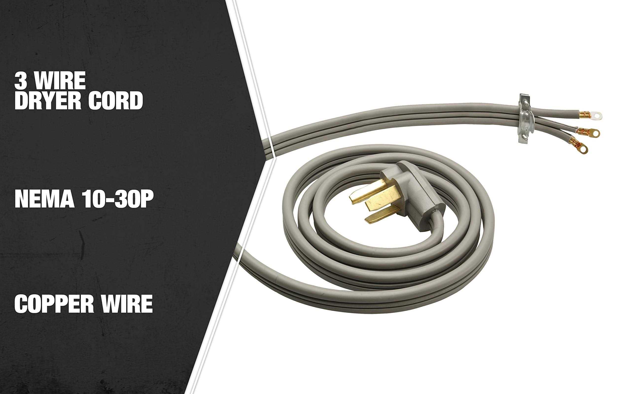- 6 foot, 3 Wire dryer replacement power supply cord with copper wire conductors
