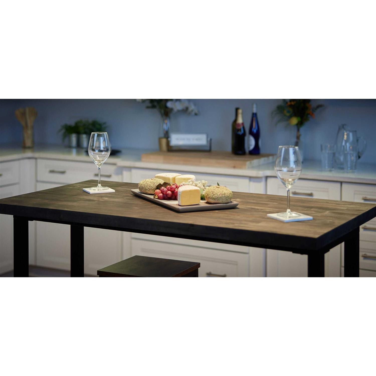 Sparrow Peak Ebony-stained finger joint Acacia countertops provide natural warmth for your kitchen and home. Made from sustainably forested Acacia, these countertops are as durable as they are functional and beautiful. Acacia countertops can be customized for your needs and can be easily cut, machined and finished. Whether you choose to bring out the natural features with oil or finish with a durable lacquer, this Sparrow Peak countertop can become the focal point of your kitchen transformation. Not only are Sparrow Peak countertops great in the kitchen, they can be used throughout your home, garage, shed or studio for desktops, tables, workbenches, potting tables, laundry room folding tables and more. Each countertop is unique with naturally occurring variations in color, grain patterns and the organic features of real Acacia. Regular maintenance of your Sparrow Peak countertop will ensure its beauty lasts for generations to come. Use Minwax Ebony 2718 or similar for touchup stain.